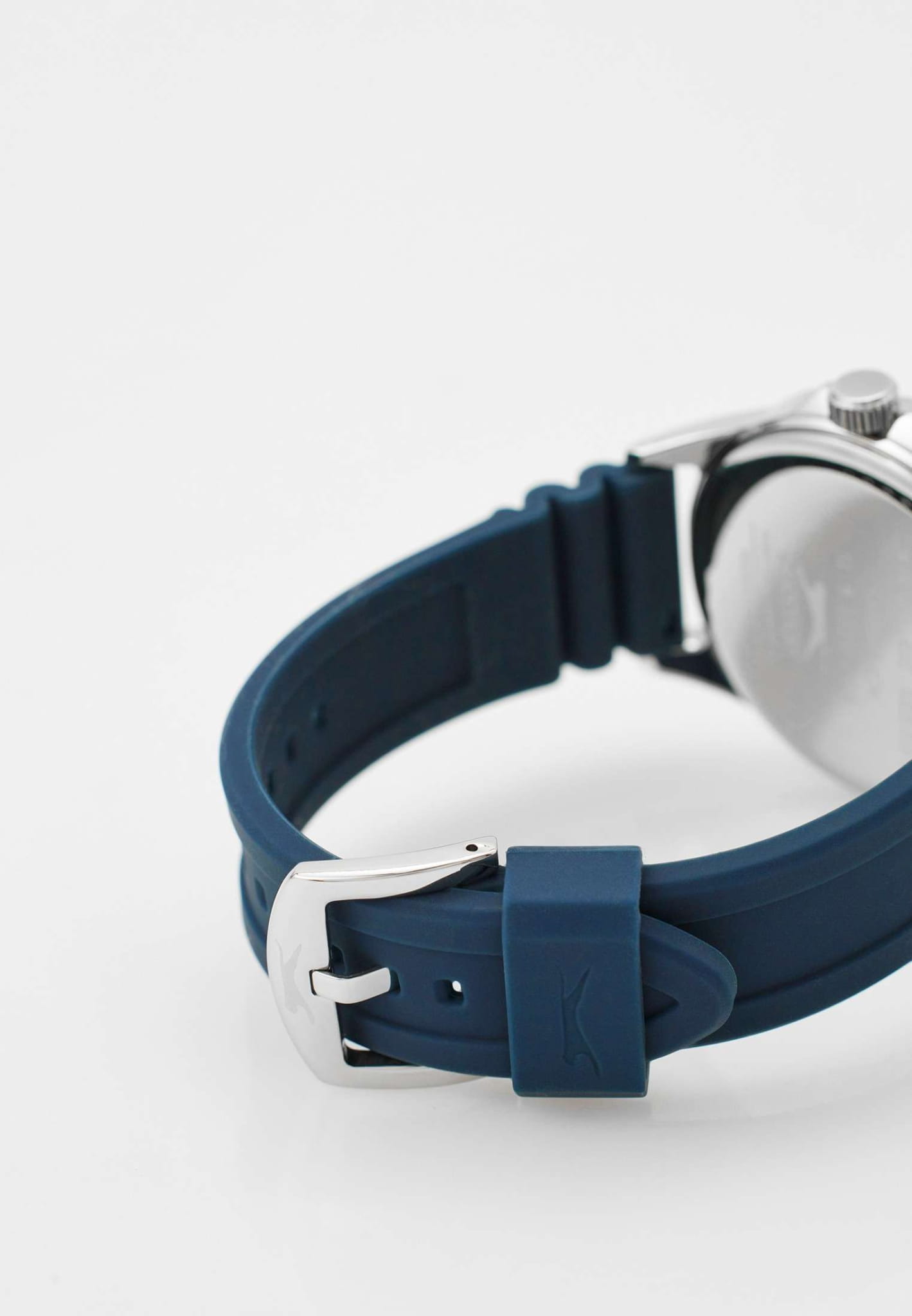 Часы Slazenger SL.09.2224.1.03 — это надежные и стильные наручные часы, созданные в Англии и оснащённые высокоточным кварцевым механизмом. Корпус выполнен из металла и гармонично сочетается с синим резиновым ремешком шириной 22 мм, который обеспечивает удобную посадку и фиксируется классической застежкой. Минеральное стеклоМинеральное стеклоМинеральное стекло представляет собой искусственно выращенный минерал кварца. Такое стекло отличается особой устойчивостью к повреждениям и царапинам. Уступает по некоторым качествам сапфировому стеклу. защищает циферблат от царапин, а благодаря водозащите класса WR 50 часы не боятся брызг и дождя. БезельБезельВнешний ободок, закрепляющий стекло. В спортивных часах так называется поворотное кольцо с делениями на циферблате, выполняет роль таймера – замеряет отрезки времени на шкале. Неподвижный безель – элемент декора. Однонаправленно вращающийся безель на дайверских часах позволяет фиксировать моменты погружения и выныривания на поверхность. с синим IP-покрытиемIP-покрытиеМетод ионного напыления. Демонстрирует повышенную устойчивость к истиранию, окислению и химическим веществам. Под воздействием высокого давления и температуры около 1500°C молекулы металла надёжно соединяются с частицами корпуса часов. придает часам дополнительную прочность и устойчивость к износу. Модель отличается крупным корпусом диаметром 45 мм и толщиной 12 мм, вес изделия — 80 грамм. Стрелки и метки снабжены люминесцентным покрытиемЛюминесцентное покрытиеПозволяет считывать показания времени в темноте. Производители наносят на стрелки, часовые индексы, безель или поверхность циферблата светонакопительный состав, дающий холодное свечение., что позволяет легко считывать время в темноте, а также есть окошко даты и защищённая заводная головка. Эта модель станет отличным выбором для тех, кто ценит функциональность, надежность и современный дизайн.