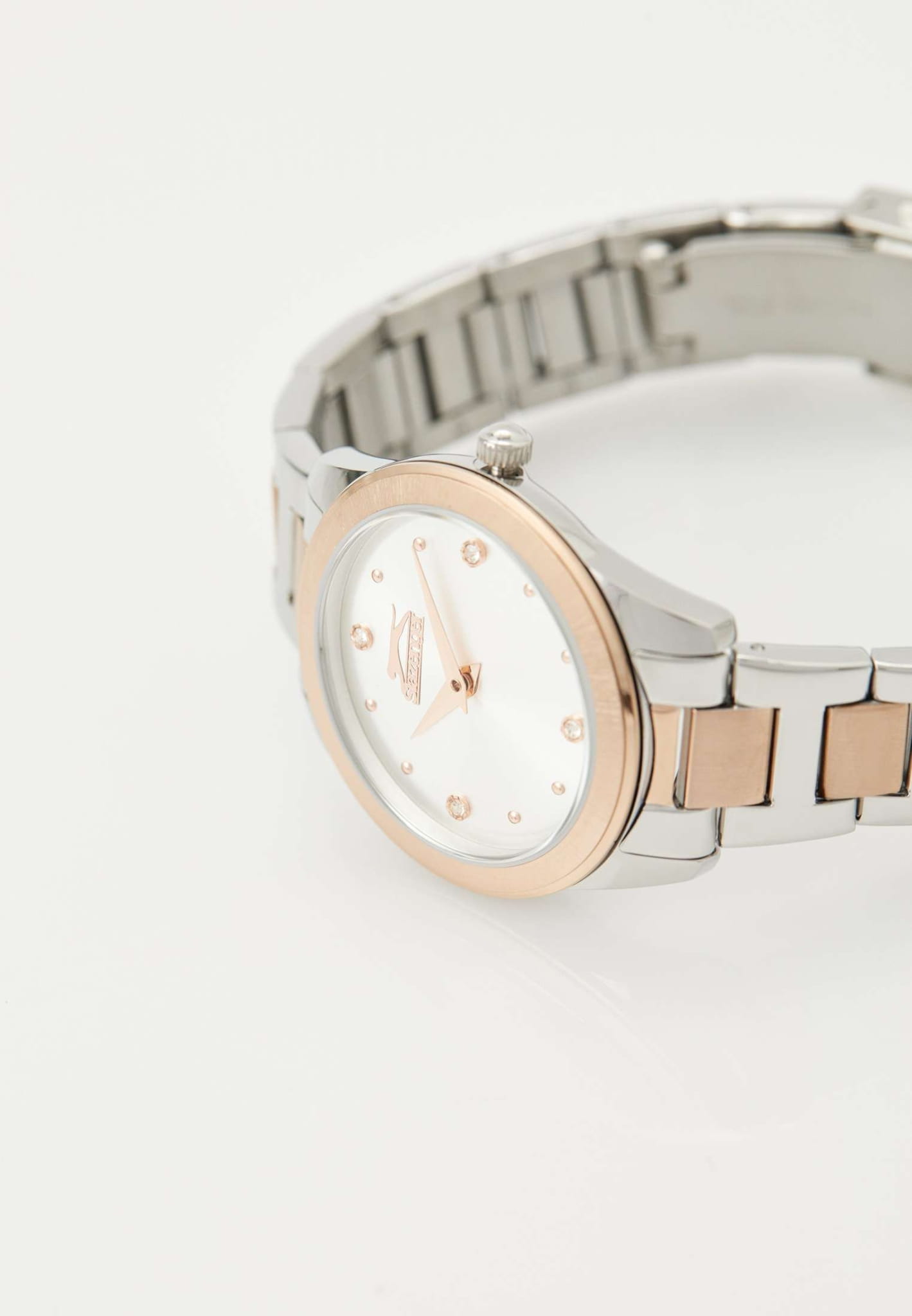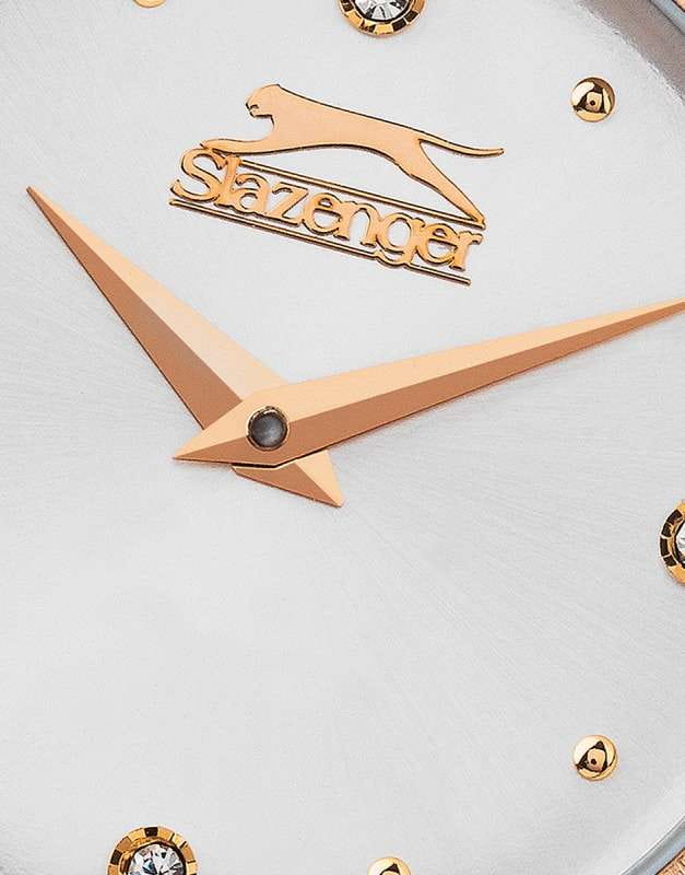 Часы Slazenger SL.09.2253.3.03 — это стильная и элегантная модель, созданная для тех, кто ценит утонченность и надежность. Корпус выполнен из прочного металла, а изящный серебристый браслет с частичным розово-золотистым IP-покрытиемIP-покрытиеМетод ионного напыления. Демонстрирует повышенную устойчивость к истиранию, окислению и химическим веществам. Под воздействием высокого давления и температуры около 1500°C молекулы металла надёжно соединяются с частицами корпуса часов. оснащён удобной раскладной застёжкойРаскладная застёжкаТакой тип застёжки используется только на браслетах из металла. Она никогда не раскрывается полностью, происходит разделение на 2 и более частей. Раскладывающая застёжка снизит вероятность потери часов к минимуму.. На безельБезельВнешний ободок, закрепляющий стекло. В спортивных часах так называется поворотное кольцо с делениями на циферблате, выполняет роль таймера – замеряет отрезки времени на шкале. Неподвижный безель – элемент декора. Однонаправленно вращающийся безель на дайверских часах позволяет фиксировать моменты погружения и выныривания на поверхность. нанесено розово-золотистое IP-покрытиеIP-покрытиеМетод ионного напыления. Демонстрирует повышенную устойчивость к истиранию, окислению и химическим веществам. Под воздействием высокого давления и температуры около 1500°C молекулы металла надёжно соединяются с частицами корпуса часов..  Минеральное стеклоМинеральное стеклоМинеральное стекло представляет собой искусственно выращенный минерал кварца. Такое стекло отличается особой устойчивостью к повреждениям и царапинам. Уступает по некоторым качествам сапфировому стеклу. защищает серебристый циферблат, украшенный сияющими кристаллами, придающими аксессуару особый шарм. Кварцевый механизм обеспечивает точность хода, а водозащита класса WR 30 позволяет не беспокоиться о случайных брызгах. Диаметр корпуса составляет 33 мм, ширина браслета — 16 мм, толщина корпуса — 8 мм, что делает эти часы аккуратными и комфортными для повседневной носки. Модель весит 70 грамм. Часы прекрасно дополнят как деловой, так и повседневный образ, подчеркивая индивидуальность своей обладательницы.