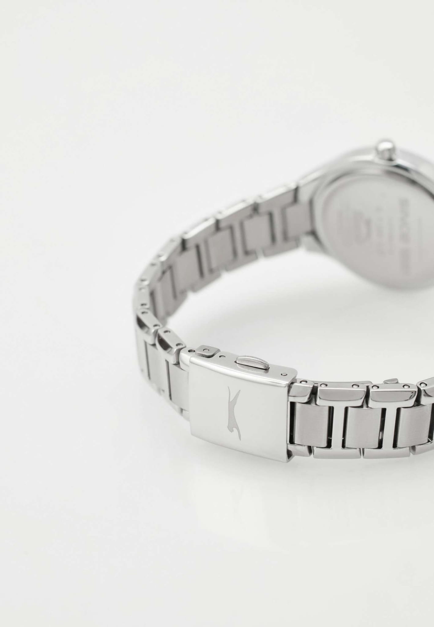 Часы Slazenger SL.09.2254.3.07 — это стильный и надежный аксессуар, который подчеркнет ваш индивидуальный образ. Корпус и браслет выполнены из инновационного суперметалла — сплава на основе меди с пониженным содержанием цинка и никеля, обладающего особой прочностью и долговечностью благодаря специальной технологии покрытия. Модель оснащена точным кварцевым механизмом, который обеспечивает стабильную работу и не требует ежедневного завода. Под прочным минеральным стекломМинеральное стеклоМинеральное стекло представляет собой искусственно выращенный минерал кварца. Такое стекло отличается особой устойчивостью к повреждениям и царапинам. Уступает по некоторым качествам сапфировому стеклу. расположен лаконичный голубой циферблат, придающий часам элегантный и современный вид. Стальной браслет с раскладной застёжкойРаскладная застёжкаТакой тип застёжки используется только на браслетах из металла. Она никогда не раскрывается полностью, происходит разделение на 2 и более частей. Раскладывающая застёжка снизит вероятность потери часов к минимуму. обеспечивает комфортную посадку. Диаметр корпуса составляет 32 мм, толщина — 8 мм, что делает часы аккуратными и удобными для повседневного ношения. Класс водозащиты 3 атмосферы защищает механизм от случайных брызг и капель дождя.