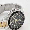 Часы Slazenger SL.09.2273.2.05 – стильный и функциональный аксессуар, который станет достойным дополнением к вашему образу. Модель оснащена надежным кварцевым механизмом, заключенным в корпус из инновационного суперметалла – прочного сплава на основе меди с пониженным содержанием цинка и никеля и специальным покрытием, устойчивым к износу. На безельБезельВнешний ободок, закрепляющий стекло. В спортивных часах так называется поворотное кольцо с делениями на циферблате, выполняет роль таймера – замеряет отрезки времени на шкале. Неподвижный безель – элемент декора. Однонаправленно вращающийся безель на дайверских часах позволяет фиксировать моменты погружения и выныривания на поверхность. нанесено черное IP-покрытиеIP-покрытиеМетод ионного напыления. Демонстрирует повышенную устойчивость к истиранию, окислению и химическим веществам. Под воздействием высокого давления и температуры около 1500°C молекулы металла надёжно соединяются с частицами корпуса часов., что придает аксессуару утончённый и универсальный внешний вид. Зеленый циферблат под минеральным стекломМинеральное стеклоМинеральное стекло представляет собой искусственно выращенный минерал кварца. Такое стекло отличается особой устойчивостью к повреждениям и царапинам. Уступает по некоторым качествам сапфировому стеклу. дополнен отдельными счетчиками: 24-часовой указатель времени, индикаторы даты и дня недели. Диаметр корпуса составляет 44 мм, а толщина – 12 мм, что обеспечивает комфортную посадку на запястье и подчёркивает современный стиль часов. Браслет из суперметалла с частичным золотистым IP-покрытиемIP-покрытиеМетод ионного напыления. Демонстрирует повышенную устойчивость к истиранию, окислению и химическим веществам. Под воздействием высокого давления и температуры около 1500°C молекулы металла надёжно соединяются с частицами корпуса часов. и с раскладной застёжкойРаскладная застёжкаТакой тип застёжки используется только на браслетах из металла. Она никогда не раскрывается полностью, происходит разделение на 2 и более частей. Раскладывающая застёжка снизит вероятность потери часов к минимуму. обеспечивает комфортную посадку. Стрелки и метки с люминесцентным покрытиемЛюминесцентное покрытиеПозволяет считывать показания времени в темноте. Производители наносят на стрелки, часовые индексы, безель или поверхность циферблата светонакопительный состав, дающий холодное свечение. удобно подсвечиваются в темноте после зарядки на свету. Водонепроницаемость 5 АТМ защищает механизм от брызг и дождя, позволяя не беспокоиться о сохранности аксессуара в повседневной жизни. Эта модель станет отличным выбором для ежедневного ношения или особых случаев и прекрасным подарком для мужчины к любому празднику.