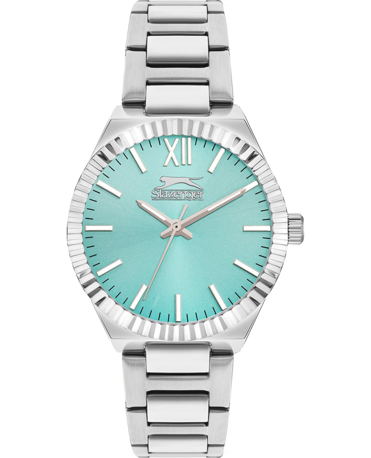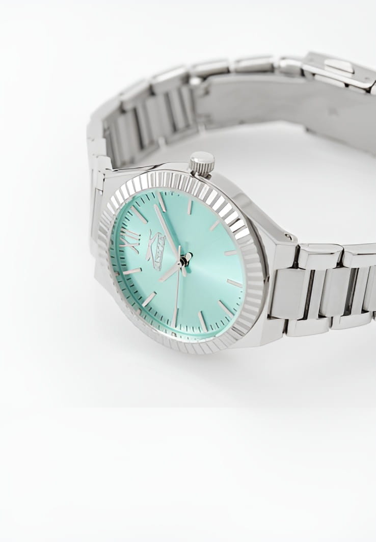Женские кварцевые часы Slazenger SL.09.2304.3.03 — это элегантный и стильный аксессуар, идеально дополняющий любой образ. Корпус и браслет выполнены из суперметалла, защищён минеральным стекломМинеральное стеклоМинеральное стекло представляет собой искусственно выращенный минерал кварца. Такое стекло отличается особой устойчивостью к повреждениям и царапинам. Уступает по некоторым качествам сапфировому стеклу.. Циферблат бирюзового цвета оформлен в классическом стиле, стрелки оснащены люминесцентным покрытиемЛюминесцентное покрытиеПозволяет считывать показания времени в темноте. Производители наносят на стрелки, часовые индексы, безель или поверхность циферблата светонакопительный состав, дающий холодное свечение., обеспечивающим хорошую читаемость в темноте. Браслет из суперметалла фиксируется на раскладной застёжкеРаскладная застёжкаТакой тип застёжки используется только на браслетах из металла. Она никогда не раскрывается полностью, происходит разделение на 2 и более частей. Раскладывающая застёжка снизит вероятность потери часов к минимуму., обеспечивая надёжность и комфорт ношения. Водонепроницаемость 30 м позволяет использовать часы в повседневных условиях, защищая от случайных брызг и капель дождя. Модель сочетает в себе лёгкость, прочность и изысканный внешний вид.
