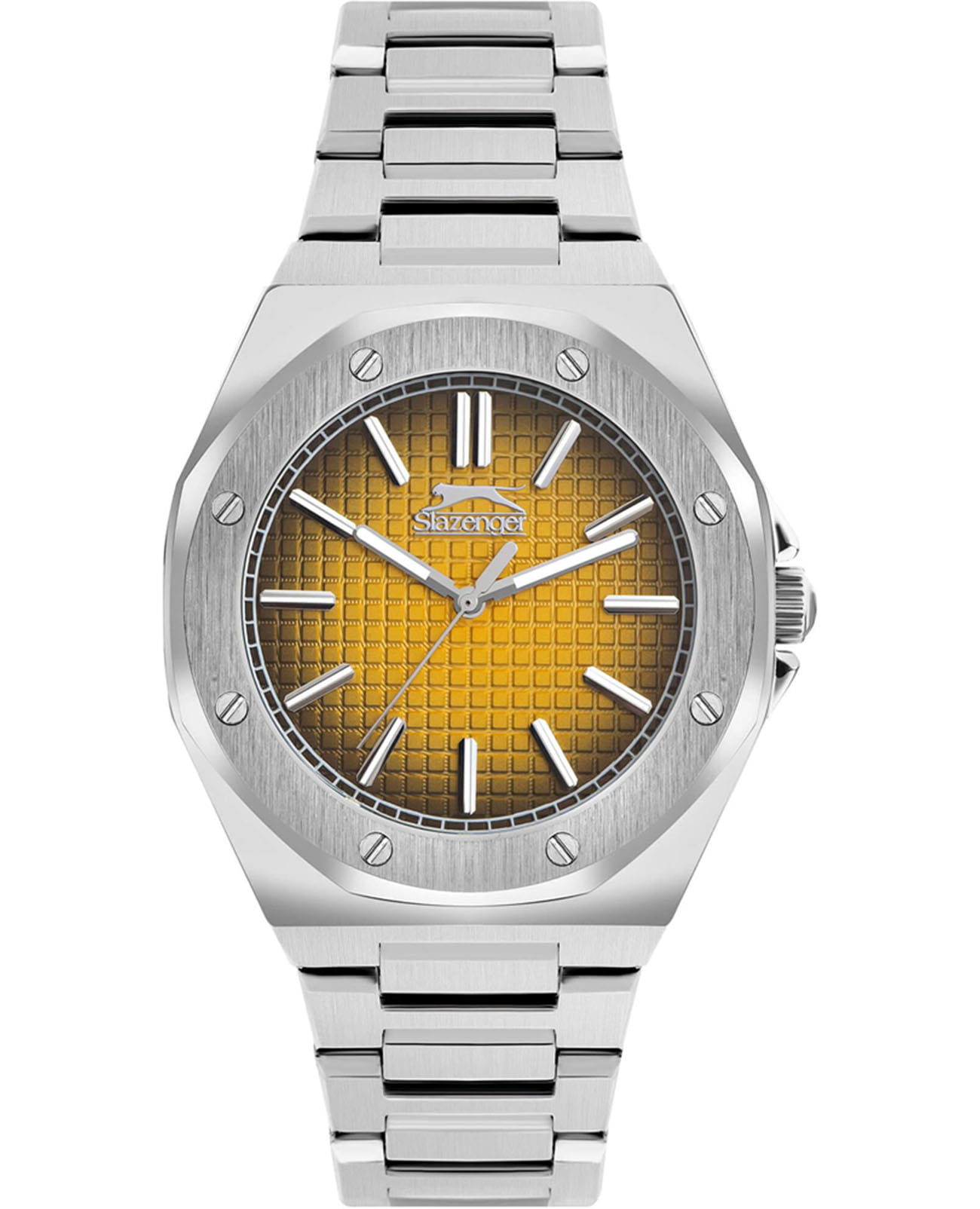 Мужские кварцевые часы Slazenger SL.09.2305.1.03 — это стильный и надёжный аксессуар, сочетающий современный дизайн и прочность. Корпус и браслет выполнены из суперметалла, защищён минеральным стекломМинеральное стеклоМинеральное стекло представляет собой искусственно выращенный минерал кварца. Такое стекло отличается особой устойчивостью к повреждениям и царапинам. Уступает по некоторым качествам сапфировому стеклу.. Циферблат жёлтого цвета оформлен в классическом стиле, стрелки оснащены люминесцентным покрытиемЛюминесцентное покрытиеПозволяет считывать показания времени в темноте. Производители наносят на стрелки, часовые индексы, безель или поверхность циферблата светонакопительный состав, дающий холодное свечение., обеспечивающим хорошую читаемость в темноте. Заводная головка снабжена защитой, а задняя крышка — завинчивающаяся, что повышает надёжность конструкции. Браслет из суперметалла фиксируется на раскладной застёжкеРаскладная застёжкаТакой тип застёжки используется только на браслетах из металла. Она никогда не раскрывается полностью, происходит разделение на 2 и более частей. Раскладывающая застёжка снизит вероятность потери часов к минимуму., обеспечивая удобство и безопасность ношения. Водонепроницаемость 50 м позволяет использовать часы в повседневных условиях, защищая от случайных брызг и капель дождя. Модель подчёркивает индивидуальность владельца и идеально подходит как для повседневного, так и для делового образа.