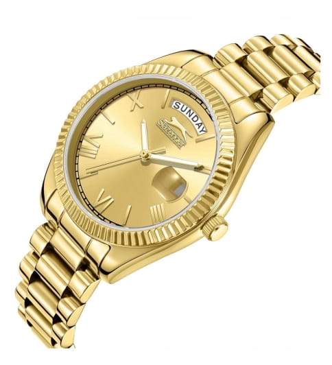Женские элегантные наручные часы Slazenger SL.09.2338.4.09 сочетают в себе современный стиль и функциональность. Стильный корпус выполнен из суперметалла с IP-покрытиемIP-покрытиеМетод ионного напыления. Демонстрирует повышенную устойчивость к истиранию, окислению и химическим веществам. Под воздействием высокого давления и температуры около 1500°C молекулы металла надёжно соединяются с частицами корпуса часов., придающий модели дополнительную прочность и элегантный внешний вид. Изысканный циферблат защищён минеральным стекломМинеральное стеклоМинеральное стекло представляет собой искусственно выращенный минерал кварца. Такое стекло отличается особой устойчивостью к повреждениям и царапинам. Уступает по некоторым качествам сапфировому стеклу., устойчивым к царапинам и повреждениям. Водонепроницаемость 3 АТМ позволяет использовать часы в повседневных условиях — при мытье рук или под лёгким дождём. Браслет из суперметалла с IP-покрытиемIP-покрытиеМетод ионного напыления. Демонстрирует повышенную устойчивость к истиранию, окислению и химическим веществам. Под воздействием высокого давления и температуры около 1500°C молекулы металла надёжно соединяются с частицами корпуса часов. и с раскладной застёжкойРаскладная застёжкаТакой тип застёжки используется только на браслетах из металла. Она никогда не раскрывается полностью, происходит разделение на 2 и более частей. Раскладывающая застёжка снизит вероятность потери часов к минимуму., обеспечивающий надёжную фиксацию и комфорт при ношении. Окошко даты находится в положении 3 часа. Cтрелки покрыты люминесцентным покрытиемЛюминесцентное покрытиеПозволяет считывать показания времени в темноте. Производители наносят на стрелки, часовые индексы, безель или поверхность циферблата светонакопительный состав, дающий холодное свечение. для читаемости в условиях недостаточного освещения. Эта модель идеально подходит для женщин, ценящих стиль, функциональность и надёжность в одном аксессуаре.