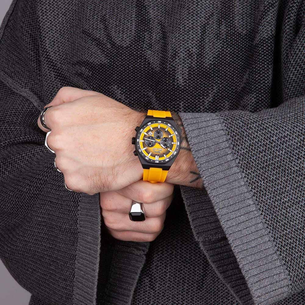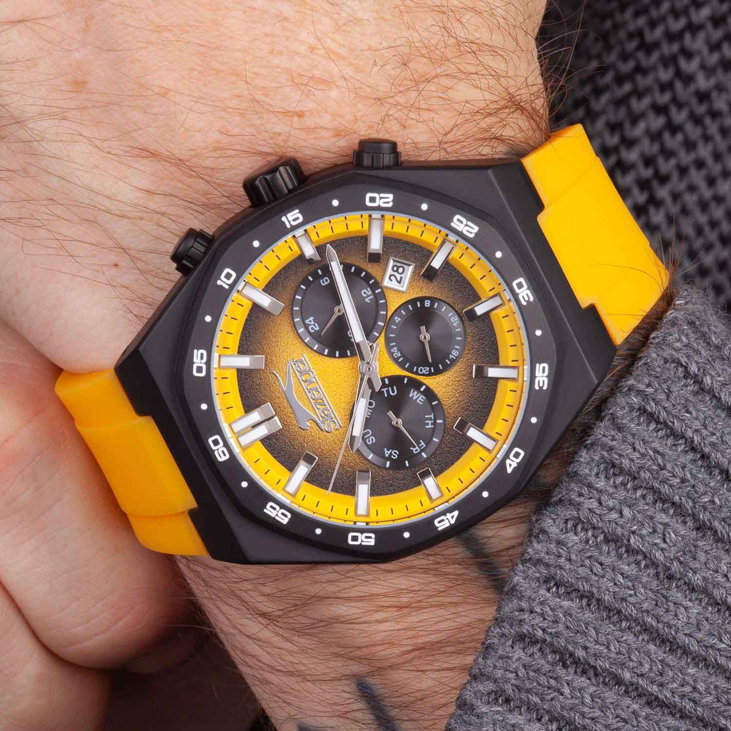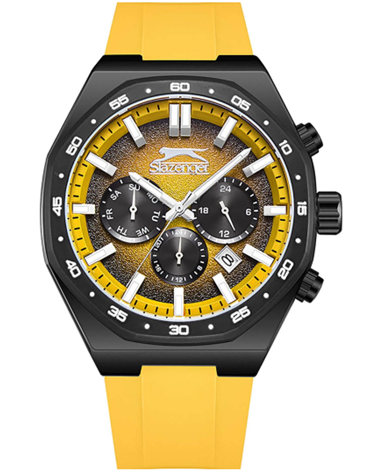Мужские элегантные наручные часы Slazenger SL.09.2341.2.04 сочетают в себе современный стиль и функциональность. Стильный корпус выполнен из нержавеющей стали с IP-покрытиемIP-покрытиеМетод ионного напыления. Демонстрирует повышенную устойчивость к истиранию, окислению и химическим веществам. Под воздействием высокого давления и температуры около 1500°C молекулы металла надёжно соединяются с частицами корпуса часов., придающий модели дополнительную прочность и элегантный внешний вид. Изысканный циферблат защищён минеральным стекломМинеральное стеклоМинеральное стекло представляет собой искусственно выращенный минерал кварца. Такое стекло отличается особой устойчивостью к повреждениям и царапинам. Уступает по некоторым качествам сапфировому стеклу., устойчивым к царапинам и повреждениям, и дополнен вынесенными малыми циферблатами для индикации дня недели и времени в 24-часовом формате. Водонепроницаемость 5 АТМ позволяет использовать часы в повседневных условиях — при мытье рук или под лёгким дождём. Ремень из силикона со стандартной застежкой, обеспечивающий надёжную фиксацию и комфорт при ношении. Окошко даты находится в положении между 4 и 5 часами. Cтрелки и метки покрыты люминесцентным покрытиемЛюминесцентное покрытиеПозволяет считывать показания времени в темноте. Производители наносят на стрелки, часовые индексы, безель или поверхность циферблата светонакопительный состав, дающий холодное свечение. для читаемости в условиях недостаточного освещения. Эта модель идеально подходит для мужчин, ценящих стиль, функциональность и надёжность в одном аксессуаре.