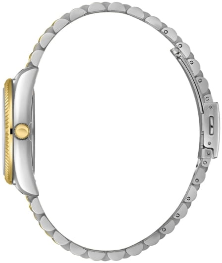 Женские кварцевые часы Slazenger SL.09.2343.4.03 – это сочетание элегантности, современного стиля и надёжности. Изящный корпус из суперметалла серебристого цвета, диаметром 36 мм и толщиной 10.5 мм, подчёркивает утончённость модели и делает их идеальным аксессуаром для любой ситуации – будь то деловая встреча, романтический вечер или повседневные выходы. Циферблат надёжно защищён минеральным стекломМинеральное стеклоМинеральное стекло представляет собой искусственно выращенный минерал кварца. Такое стекло отличается особой устойчивостью к повреждениям и царапинам. Уступает по некоторым качествам сапфировому стеклу., которое устойчиво к механическим повреждениям и сохраняет кристальную прозрачность. Рифленый неподвижный безельБезельВнешний ободок, закрепляющий стекло. В спортивных часах так называется поворотное кольцо с делениями на циферблате, выполняет роль таймера – замеряет отрезки времени на шкале. Неподвижный безель – элемент декора. Однонаправленно вращающийся безель на дайверских часах позволяет фиксировать моменты погружения и выныривания на поверхность. с IP-покрытиемIP-покрытиеМетод ионного напыления. Демонстрирует повышенную устойчивость к истиранию, окислению и химическим веществам. Под воздействием высокого давления и температуры около 1500°C молекулы металла надёжно соединяются с частицами корпуса часов. золотистого цвета. Браслет из суперметалла с частичным IP-покрытиемIP-покрытиеМетод ионного напыления. Демонстрирует повышенную устойчивость к истиранию, окислению и химическим веществам. Под воздействием высокого давления и температуры около 1500°C молекулы металла надёжно соединяются с частицами корпуса часов. удобно облегает запястье и фиксируется с помощью раскладной застёжкиРаскладная застёжкаТакой тип застёжки используется только на браслетах из металла. Она никогда не раскрывается полностью, происходит разделение на 2 и более частей. Раскладывающая застёжка снизит вероятность потери часов к минимуму., обеспечивая надёжность и комфорт в повседневном ношении. Утончённый стиль, внимание к деталям и практичность делают эту модель идеальным выбором для современных женщин, ценящих эстетику и функциональность. Вынесенный циферблат с 24-х часовым указателем времени. Водозащита до 30 метров позволит защитить корпус от случайных брызг или капель дождя.