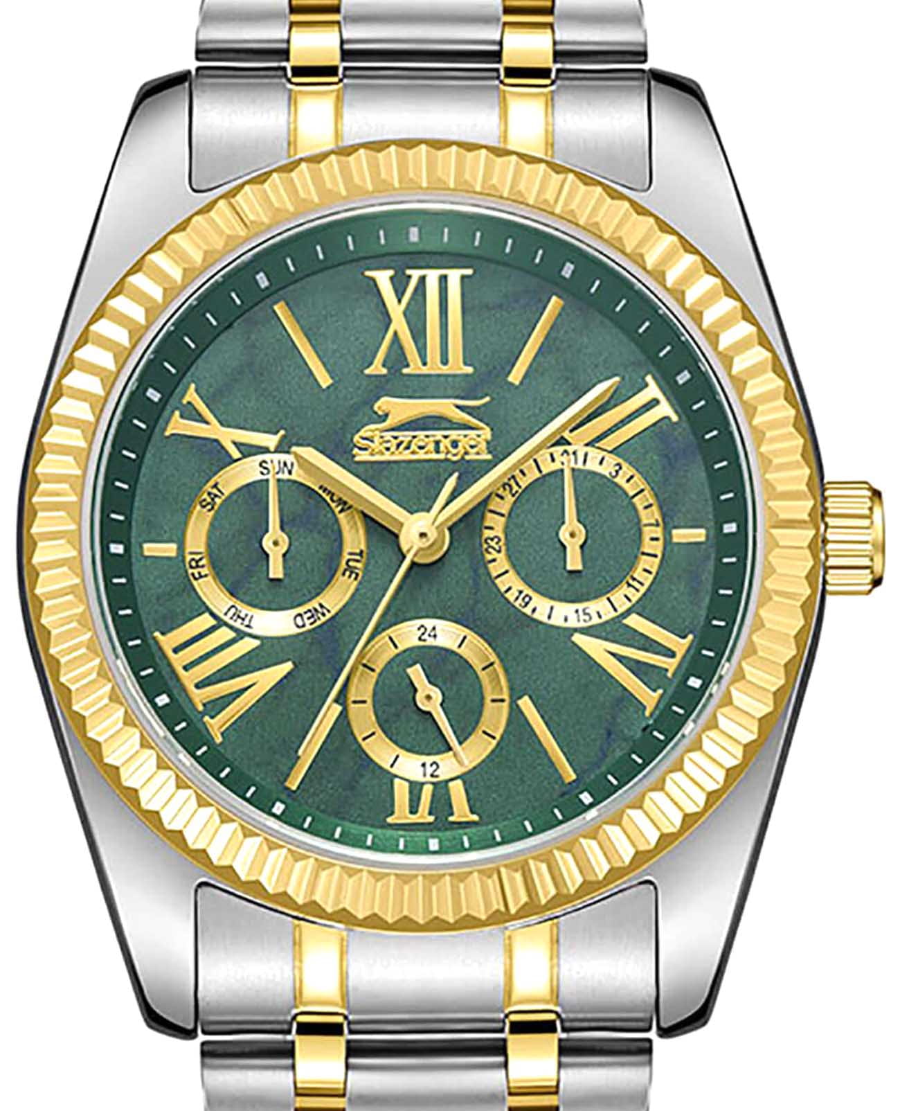 Женские кварцевые часы Slazenger SL.09.2343.4.06 – это сочетание элегантности, современного стиля и надёжности. Изящный корпус из суперметалла серебристого цвета, диаметром 36 мм и толщиной 10.5 мм, подчёркивает утончённость модели и делает их идеальным аксессуаром для любой ситуации – будь то деловая встреча, романтический вечер или повседневные выходы. Циферблат надёжно защищён минеральным стекломМинеральное стеклоМинеральное стекло представляет собой искусственно выращенный минерал кварца. Такое стекло отличается особой устойчивостью к повреждениям и царапинам. Уступает по некоторым качествам сапфировому стеклу., которое устойчиво к механическим повреждениям и сохраняет кристальную прозрачность. Рифленый неподвижный безельБезельВнешний ободок, закрепляющий стекло. В спортивных часах так называется поворотное кольцо с делениями на циферблате, выполняет роль таймера – замеряет отрезки времени на шкале. Неподвижный безель – элемент декора. Однонаправленно вращающийся безель на дайверских часах позволяет фиксировать моменты погружения и выныривания на поверхность. с IP-покрытиемIP-покрытиеМетод ионного напыления. Демонстрирует повышенную устойчивость к истиранию, окислению и химическим веществам. Под воздействием высокого давления и температуры около 1500°C молекулы металла надёжно соединяются с частицами корпуса часов. золотистого цвета. Браслет из суперметалла с частичным IP-покрытиемIP-покрытиеМетод ионного напыления. Демонстрирует повышенную устойчивость к истиранию, окислению и химическим веществам. Под воздействием высокого давления и температуры около 1500°C молекулы металла надёжно соединяются с частицами корпуса часов. удобно облегает запястье и фиксируется с помощью раскладной застёжкиРаскладная застёжкаТакой тип застёжки используется только на браслетах из металла. Она никогда не раскрывается полностью, происходит разделение на 2 и более частей. Раскладывающая застёжка снизит вероятность потери часов к минимуму., обеспечивая надёжность и комфорт в повседневном ношении. Утончённый стиль, внимание к деталям и практичность делают эту модель идеальным выбором для современных женщин, ценящих эстетику и функциональность. Вынесенный циферблат с 24-х часовым указателем времени. Водозащита до 30 метров позволит защитить корпус от случайных брызг или капель дождя.