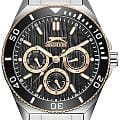 Женские кварцевые часы Slazenger SL.09.2371.2.04 – это сочетание элегантности, современного стиля и надёжности. Изящный корпус из суперметалла серебристого цвета, диаметром 38.5 мм и толщиной 11 мм, подчёркивает утончённость модели и делает их идеальным аксессуаром для любой ситуации – будь то деловая встреча, романтический вечер или повседневные выходы. Циферблат надёжно защищён минеральным стекломМинеральное стеклоМинеральное стекло представляет собой искусственно выращенный минерал кварца. Такое стекло отличается особой устойчивостью к повреждениям и царапинам. Уступает по некоторым качествам сапфировому стеклу., которое устойчиво к механическим повреждениям и сохраняет кристальную прозрачность. БезельБезельВнешний ободок, закрепляющий стекло. В спортивных часах так называется поворотное кольцо с делениями на циферблате, выполняет роль таймера – замеряет отрезки времени на шкале. Неподвижный безель – элемент декора. Однонаправленно вращающийся безель на дайверских часах позволяет фиксировать моменты погружения и выныривания на поверхность. с IP-покрытиемIP-покрытиеМетод ионного напыления. Демонстрирует повышенную устойчивость к истиранию, окислению и химическим веществам. Под воздействием высокого давления и температуры около 1500°C молекулы металла надёжно соединяются с частицами корпуса часов. черного цвета. Браслет из суперметалла с частичным IP-покрытиемIP-покрытиеМетод ионного напыления. Демонстрирует повышенную устойчивость к истиранию, окислению и химическим веществам. Под воздействием высокого давления и температуры около 1500°C молекулы металла надёжно соединяются с частицами корпуса часов. удобно облегает запястье и фиксируется с помощью раскладной застёжкиРаскладная застёжкаТакой тип застёжки используется только на браслетах из металла. Она никогда не раскрывается полностью, происходит разделение на 2 и более частей. Раскладывающая застёжка снизит вероятность потери часов к минимуму., обеспечивая надёжность и комфорт в повседневном ношении. Утончённый стиль, внимание к деталям и практичность делают эту модель идеальным выбором для современных женщин, ценящих эстетику и функциональность. Стрелки и метки покрыты люминесцентным покрытиемЛюминесцентное покрытиеПозволяет считывать показания времени в темноте. Производители наносят на стрелки, часовые индексы, безель или поверхность циферблата светонакопительный состав, дающий холодное свечение., обеспечивающим отличную читаемость в темноте. Вынесенный циферблат с 24-х часовым указателем времени украшен фианитами. Водозащита до 30 метров позволит защитить корпус от случайных брызг или капель дождя.