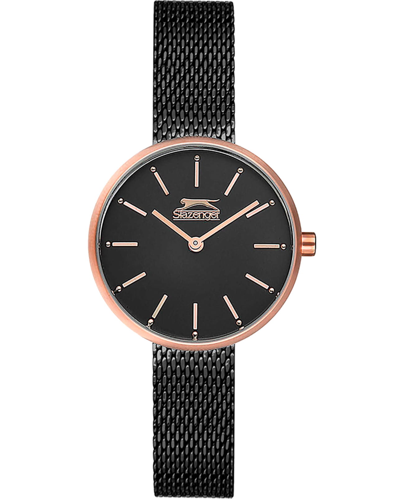 Женские кварцевые часы Slazenger — это стильный аксессуар с круглым корпусом и изящным браслетом миланского плетения. Корпус диаметром 30 мм и толщиной 8 мм выполнен из суперметалла с IP-покрытиемIP-покрытиеМетод ионного напыления. Демонстрирует повышенную устойчивость к истиранию, окислению и химическим веществам. Под воздействием высокого давления и температуры около 1500°C молекулы металла надёжно соединяются с частицами корпуса часов.. Циферблат чёрного цвета оформлен индексами и стрелками. Циферблат защищён минеральным стекломМинеральное стеклоМинеральное стекло представляет собой искусственно выращенный минерал кварца. Такое стекло отличается особой устойчивостью к повреждениям и царапинам. Уступает по некоторым качествам сапфировому стеклу.. Механизм — кварцевый. Часы оснащены браслетом из суперметалла миланского плетения с раскладной застёжкойРаскладная застёжкаТакой тип застёжки используется только на браслетах из металла. Она никогда не раскрывается полностью, происходит разделение на 2 и более частей. Раскладывающая застёжка снизит вероятность потери часов к минимуму.. Водонепроницаемость 30 м позволяет использовать часы в повседневных условиях. Идеальный выбор для тех, кто ценит элегантность и качество.