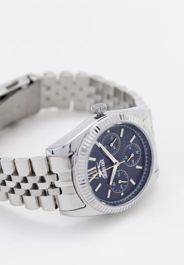 Женские элегантные наручные часы Slazenger SL.09.6556.4.01 сочетают в себе современный стиль и функциональность. Стильный корпус выполнен из суперметалла, придающий модели дополнительную прочность и элегантный внешний вид. Изысканный циферблат защищён минеральным стекломМинеральное стеклоМинеральное стекло представляет собой искусственно выращенный минерал кварца. Такое стекло отличается особой устойчивостью к повреждениям и царапинам. Уступает по некоторым качествам сапфировому стеклу., устойчивым к царапинам и повреждениям. Водонепроницаемость 5 АТМ позволяет использовать часы в повседневных условиях — при мытье рук или под лёгким дождём. Браслет из суперметалла и с раскладной застёжкойРаскладная застёжкаТакой тип застёжки используется только на браслетах из металла. Она никогда не раскрывается полностью, происходит разделение на 2 и более частей. Раскладывающая застёжка снизит вероятность потери часов к минимуму., обеспечивающий надёжную фиксацию и комфорт при ношении. На отдельные циферблаты вынесены указатели 24-часового времени, даты и дня недели, что делает использование часов особенно удобным в повседневной жизни. Cтрелки и метки покрыты люминесцентным покрытиемЛюминесцентное покрытиеПозволяет считывать показания времени в темноте. Производители наносят на стрелки, часовые индексы, безель или поверхность циферблата светонакопительный состав, дающий холодное свечение. для читаемости в условиях недостаточного освещения. Эта модель идеально подходит для женщин, ценящих стиль, функциональность и надёжность в одном аксессуаре.