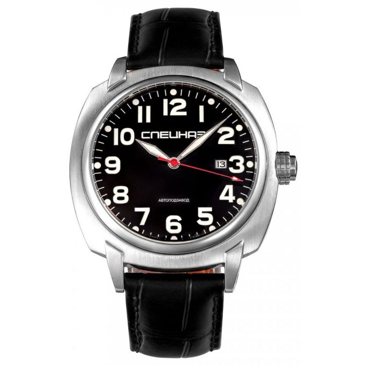 Часы Спецназ "Профессионал" С9060369-8215 сочетают в себе надёжность и функциональность, характерные для профессиональных моделей. Корпус диаметром 46 мм выполнен из нержавеющей стали, а чёрный циферблат защищён минеральным стекломМинеральное стеклоМинеральное стекло представляет собой искусственно выращенный минерал кварца. Такое стекло отличается особой устойчивостью к повреждениям и царапинам. Уступает по некоторым качествам сапфировому стеклу..