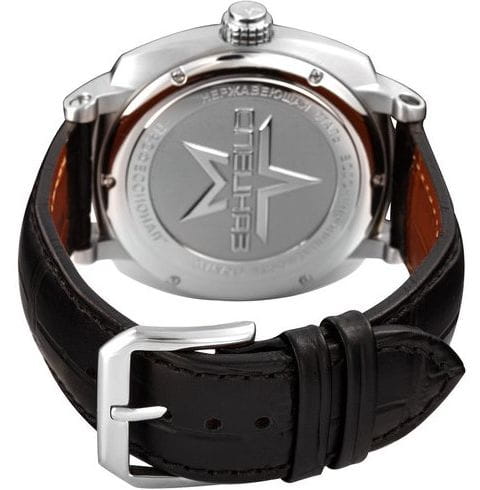 Внутри установлен японский механический механизм Miyota 8215 с автоподзаводом, обеспечивающий высокую точность хода. Запас хода составляет около 40 часов. На циферблате отображается текущее число месяца.