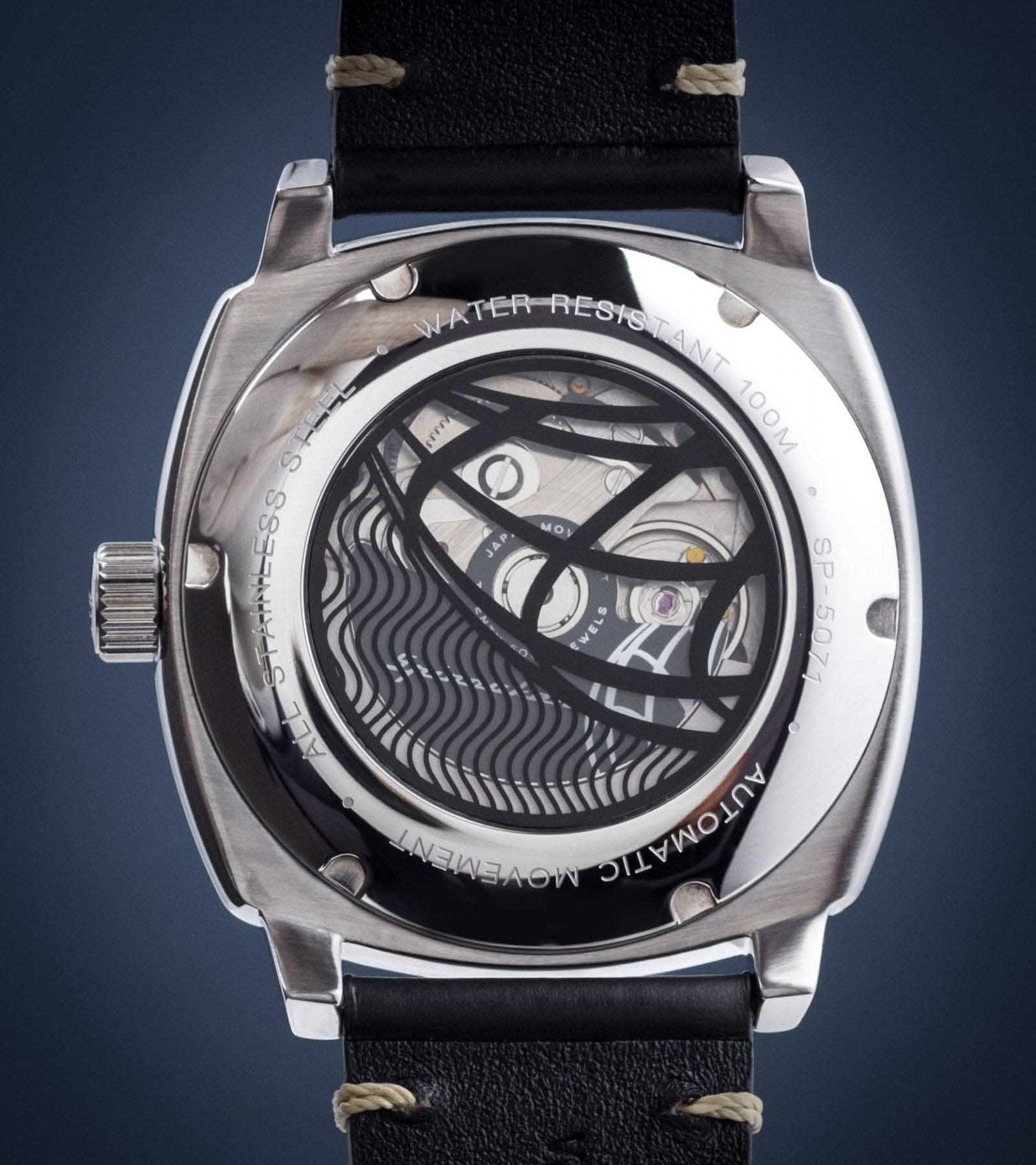 Мужские итальянские часы Spinnaker Hull California SP-5071-02, механический механизм (автоматический калибр) с высокой точностью. Циферблат с люминесцентным покрытиемЛюминесцентное покрытиеПозволяет считывать показания времени в темноте. Производители наносят на стрелки, часовые индексы, безель или поверхность циферблата светонакопительный состав, дающий холодное свечение. стрелок и меток дополнен закаленном минеральным стекломМинеральное стеклоМинеральное стекло представляет собой искусственно выращенный минерал кварца. Такое стекло отличается особой устойчивостью к повреждениям и царапинам. Уступает по некоторым качествам сапфировому стеклу. с антибликовым покрытием, устойчивым к мелким механическим повреждениям. Класс водозащиты: 100 метров, позволит плавать, нырять и заниматься другими водными видами спорта. Корпус часов изготовлен из стали. Черный кожаный ремешок шириной 22 мм, стандартная застежка.
