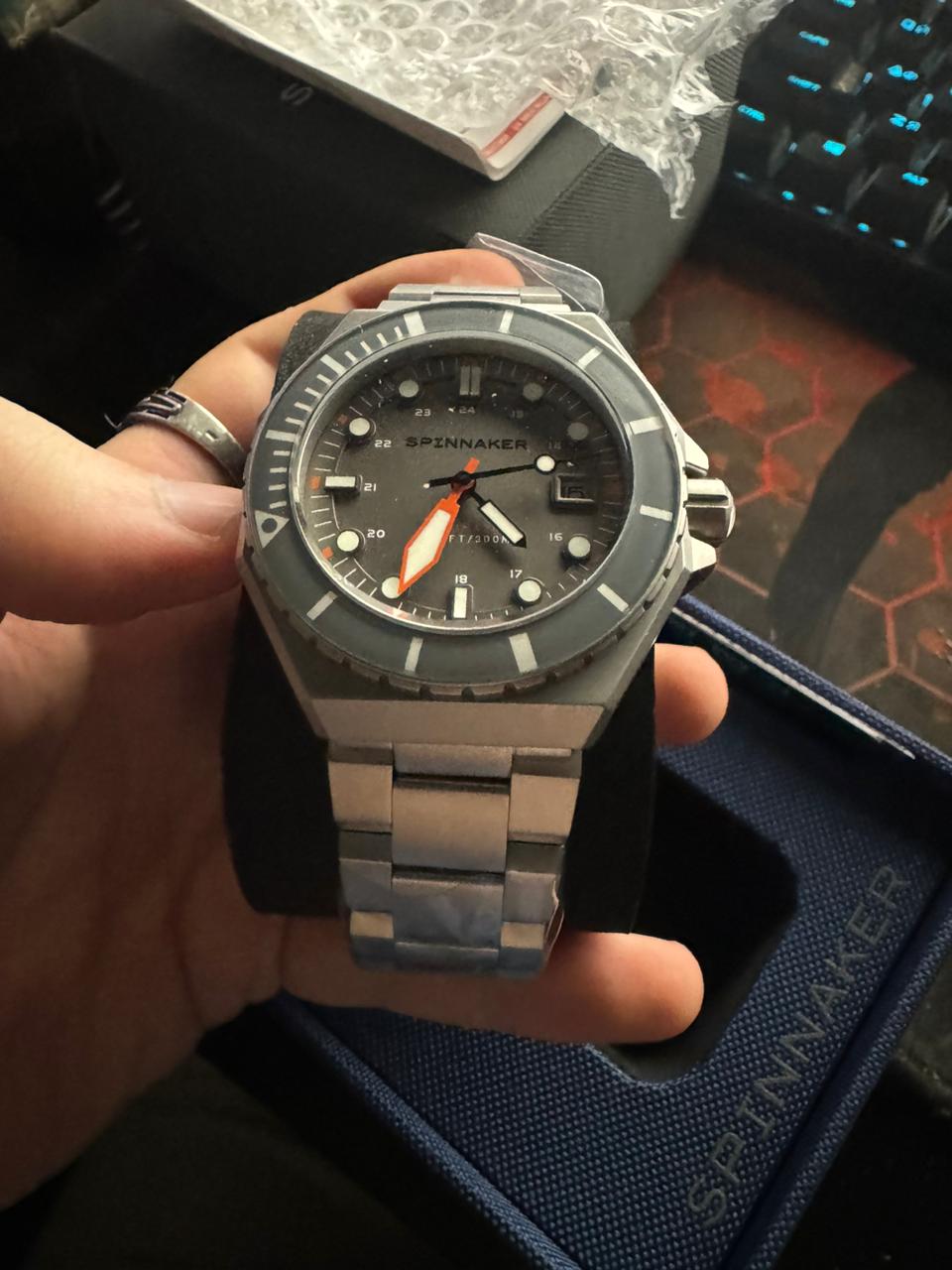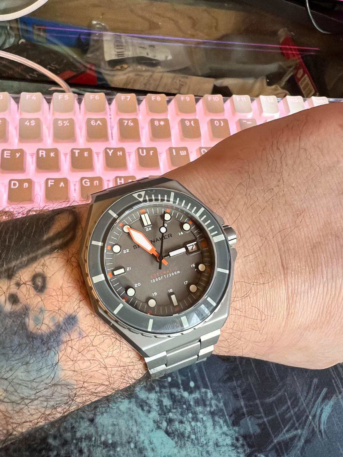 Мужские итальянские механические часы с автоподзаводом Spinnaker Dumas SP-5081-KK, механический механизм (автоматический калибр) с высокой точностью. Циферблат с люминесцентным покрытиемЛюминесцентное покрытиеПозволяет считывать показания времени в темноте. Производители наносят на стрелки, часовые индексы, безель или поверхность циферблата светонакопительный состав, дающий холодное свечение. стрелок, меток и безеляБезельВнешний ободок, закрепляющий стекло. В спортивных часах так называется поворотное кольцо с делениями на циферблате, выполняет роль таймера – замеряет отрезки времени на шкале. Неподвижный безель – элемент декора. Однонаправленно вращающийся безель на дайверских часах позволяет фиксировать моменты погружения и выныривания на поверхность. дополнен сапфировым стекломСапфировое стеклоПрочный и надёжный материал из кристалла сапфира синтетического происхождения, характеризующийся особой твёрдостью и устойчивостью к царапинам и повреждениям. с антибликовым покрытием, устойчивым к появлению царапин и обладающее высокой прозрачностью. Класс водозащиты: 300 метров (погружение с аквалангом). Корпус часов изготовлен из нержавеющей стали 316L. Благодаря обновленному безелюБезельВнешний ободок, закрепляющий стекло. В спортивных часах так называется поворотное кольцо с делениями на циферблате, выполняет роль таймера – замеряет отрезки времени на шкале. Неподвижный безель – элемент декора. Однонаправленно вращающийся безель на дайверских часах позволяет фиксировать моменты погружения и выныривания на поверхность. с IP-покрытиемIP-покрытиеМетод ионного напыления. Демонстрирует повышенную устойчивость к истиранию, окислению и химическим веществам. Под воздействием высокого давления и температуры около 1500°C молекулы металла надёжно соединяются с частицами корпуса часов. с более техническим изгибом, мастерство и точность изготовления часов Spinnaker Watches демонстрируются в безелеБезельВнешний ободок, закрепляющий стекло. В спортивных часах так называется поворотное кольцо с делениями на циферблате, выполняет роль таймера – замеряет отрезки времени на шкале. Неподвижный безель – элемент декора. Однонаправленно вращающийся безель на дайверских часах позволяет фиксировать моменты погружения и выныривания на поверхность. из закаленного стекла. Стальной браслет на раскладной застёжкеРаскладная застёжкаТакой тип застёжки используется только на браслетах из металла. Она никогда не раскрывается полностью, происходит разделение на 2 и более частей. Раскладывающая застёжка снизит вероятность потери часов к минимуму..