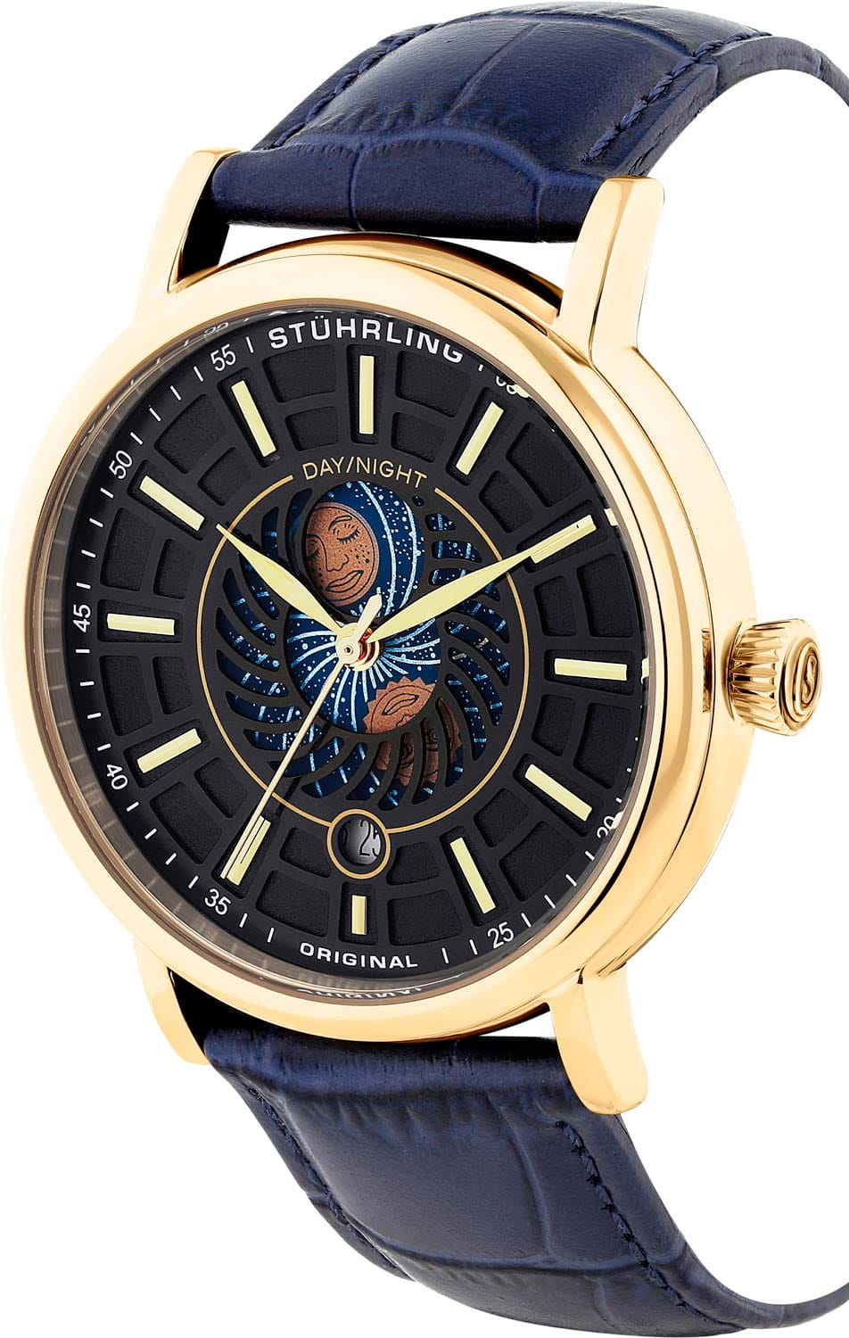 Stuhrling 899.04 — выразительные мужские часы с уникальным дизайнерским решением. Глубокий циферблат с геометрическим узором придаёт модели эффектный и современный вид. Корпус из нержавеющей стали с PVD-покрытиемPVDУльтратонкое покрытие наносится в технике вакуумного напыления, сочетает в себе нитрид титана особой прочности со слоем золота или оксида хрома. Несёт в себе декоративную или защитную функцию. отличается аккуратной полировкой и плавными формами, подчёркивающими элегантность классического стиля. Прочное стекло KrysternaKrysternaKrysterna — инновационное стекло для наручных часов. Благодаря уникальной структуре, Krysterna объединяет ключевые преимущества двух материалов: твердость сапфира, защищающую от царапин, и гибкость минерального стекла, обеспечивающую устойчивость к деформациям. Такая комбинация делает его идеальным решением для часов, подверженных экстремальным нагрузкам, сохраняя при этом оптическую прозрачность. защищает поверхность от царапин, сохраняя прозрачность и глубину цвета. Ремень из натуральной кожи на стандартной застежке, обеспечивает комфорт и надёжность при ежедневном ношении. Stuhrling — это гармония механической точности и выразительного дизайна, созданная для мужчин, ценящих стиль и совершенство деталей.