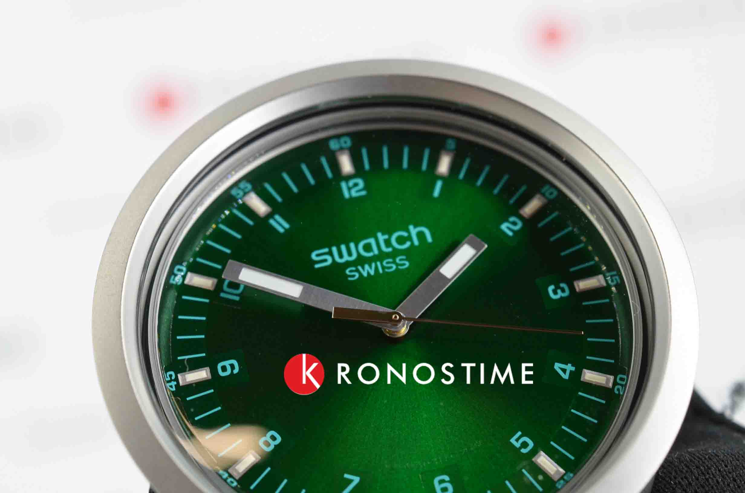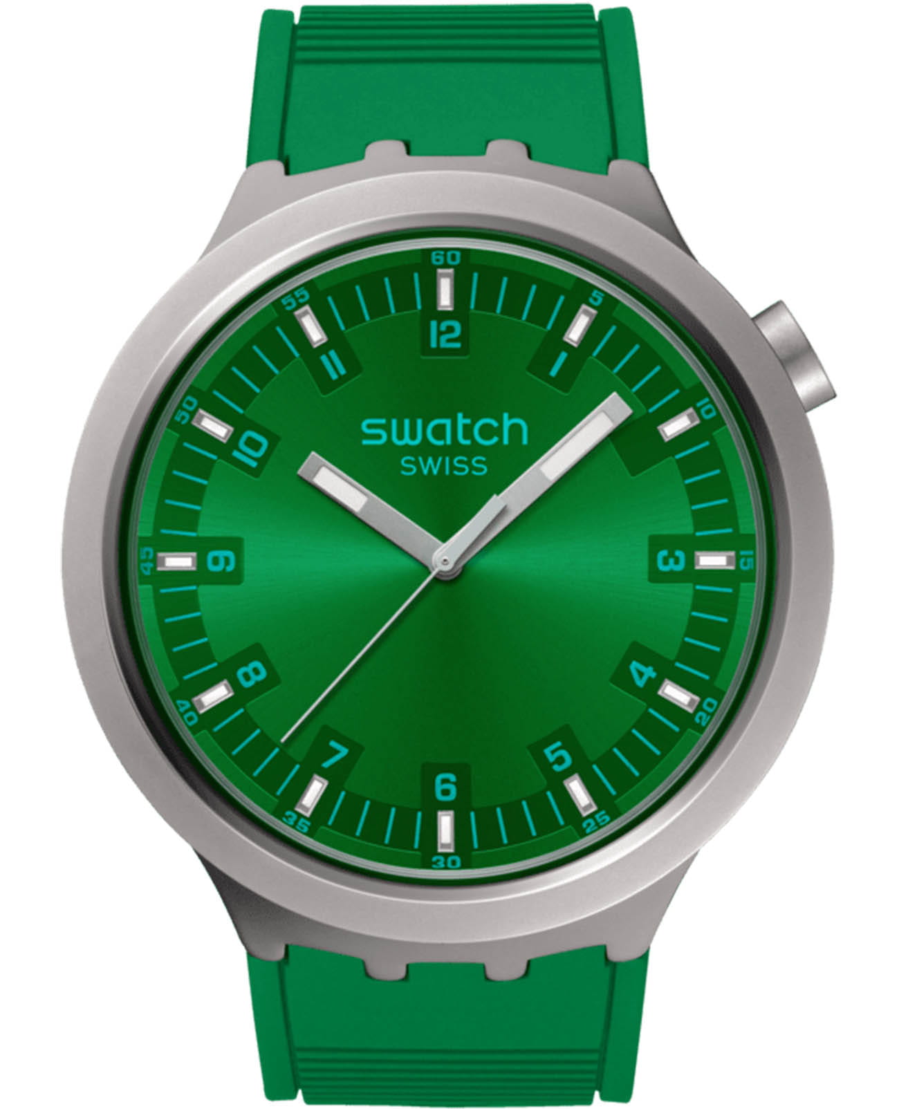 Часы Swatch SB07S101 — это стильный и современный аксессуар для тех, кто ценит лёгкость и комфорт. Часы идеально подойдут как для мужчин, так и для женщин. На зеленом циферблате с радиальной полировкой этих крупных часов размещены светящиеся в темноте индексы, бирюзовые цифры и минутная шкала, серебристые стрелки со светящимися в темноте, благодаря люминесцентному покрытиюЛюминесцентное покрытиеПозволяет считывать показания времени в темноте. Производители наносят на стрелки, часовые индексы, безель или поверхность циферблата светонакопительный состав, дающий холодное свечение., отметками на минутной и часовой. Матированные методом пескоструйной обработки корпус из нержавеющей стали эффектно контрастируют с фактурным зеленым ремешком с тренчиками в тон и стальной полупряжкой. Водозащита 30 метров делает часы практичными для повседневного использования. Эти часы подойдут для повседневного ношения и станут ярким акцентом в вашем наряде.