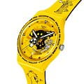 Часы Swatch SO29J101 —  эффектный и надежный аксессуар. Эти веселые часы созданы в сотрудничестве с атлетом Swatch Proteam Энди Андерсоном. Они имеют прозрачный циферблат с черным принтом и светящимися в темноте деталями, черные стрелки часов и минут с люминесцентным покрытиемЛюминесцентное покрытиеПозволяет считывать показания времени в темноте. Производители наносят на стрелки, часовые индексы, безель или поверхность циферблата светонакопительный состав, дающий холодное свечение. и черную секундную стрелку. Матовый желтый корпус с черным принтом и стеклом из биоматериала дополнен желтым силиконовым ремешком с рисунком и черной пряжкой с классической застежкой. Внутри часов установлен надежный кварцевый механизм, который обеспечивает точность хода. Эти часы водонепроницаемы до 30 метров, что позволяет не беспокоиться о случайных брызгах или дождевых каплях. Swatch SO29J101 — это идеальный выбор для тех, кто ценит сочетание стиля, комфорта и функциональности в одном аксессуаре.