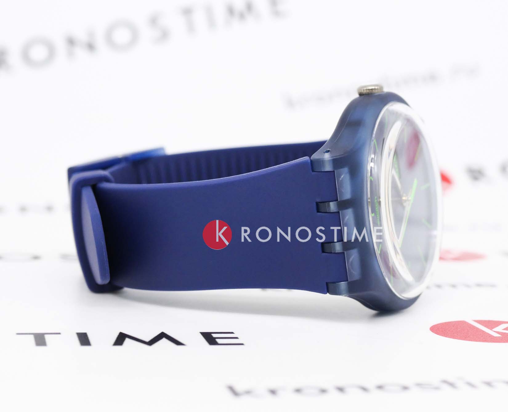 Часы Swatch New Gent Biosourced SO29N704  — это стильный и современный аксессуар, который идеально подходит для повседневного ношения. Циферблат этих часов, выполненный в темно-синем цвете с солнечной обработкой, украшен зелеными метками для часов и зеленым окном даты и дня на 3 часах. Серебристые стрелки для часов и минут с люминесцентным покрытиемЛюминесцентное покрытиеПозволяет считывать показания времени в темноте. Производители наносят на стрелки, часовые индексы, безель или поверхность циферблата светонакопительный состав, дающий холодное свечение. - светятся в темноте. Часы завершаются матовым прозрачным корпусом темно-синего цвета, матовым темно-синим ремешком с соответствующей петлей и прозрачной пряжкой. Внутри часов установлен надежный кварцевый механизм, который обеспечивает точность хода. Эти часы водонепроницаемы до 30 метров, что позволяет не беспокоиться о случайных брызгах или дождевых каплях. Ремешок часов  выполнен из биоматериала и имеет регулируемую длину, застежка классическая из пластика. Swatch SO29N704 — это идеальный выбор для тех, кто ценит сочетание стиля, комфорта и функциональности в одном аксессуаре.
