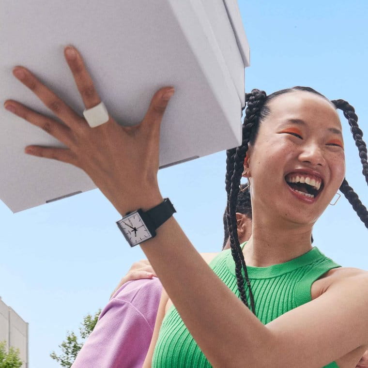 Swatch New Square Bioceramic Standard SO34B700 "WHAT IF...BLACK?" - это стильные квадратные часы с корпусом 33x33 мм из черной матовой биокерамики и белым циферблатом. Модель оснащена кварцевым механизмом, окошком даты и дня недели, водонепроницаемостью до 20 метров. Стрелки с люминесцентным покрытиемЛюминесцентное покрытиеПозволяет считывать показания времени в темноте. Производители наносят на стрелки, часовые индексы, безель или поверхность циферблата светонакопительный состав, дающий холодное свечение.. Часы имеют черный матовый ремешок из биоматериала и стекло из биоматериала. Эта экологичная модель унисекс сочетает инновационные материалы с классическим черно-белым дизайном, вдохновленным оригинальным Swatch 1983 года, и подходит для тех, кто ценит минимализм и заботу об окружающей среде.