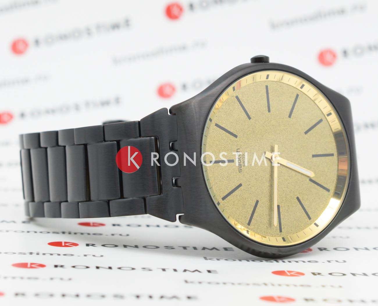 Часы Swatch SS07B109G — это стильный и современный аксессуар для тех, кто ценит лёгкость и комфорт. Часы идеально подойдут как для мужчин, так и для женщин. Эти великолепные ультратонкие часы из нержавеющей стали c PVDPVDУльтратонкое покрытие наносится в технике вакуумного напыления, сочетает в себе нитрид титана особой прочности со слоем золота или оксида хрома. Несёт в себе декоративную или защитную функцию. покрытием имеют золотистый циферблат с металлическим эффектом Reflective Chromatics, который покрыт минеральным стекломМинеральное стеклоМинеральное стекло представляет собой искусственно выращенный минерал кварца. Такое стекло отличается особой устойчивостью к повреждениям и царапинам. Уступает по некоторым качествам сапфировому стеклу. и на котором размещены черные индексы и золотистые стрелки с люминесцентным покрытиемЛюминесцентное покрытиеПозволяет считывать показания времени в темноте. Производители наносят на стрелки, часовые индексы, безель или поверхность циферблата светонакопительный состав, дающий холодное свечение.. Часы заключены в полированный корпус с черным PVDPVDУльтратонкое покрытие наносится в технике вакуумного напыления, сочетает в себе нитрид титана особой прочности со слоем золота или оксида хрома. Несёт в себе декоративную или защитную функцию. покрытием и закреплены на таком же регулируемом браслете c застёжкой «бабочка»Застёжка "бабочка"Такой вид застёжки дополняется предохранителями, помогающими избежать случайного раскрытия браслета. Обладают изящным исполнением. . Водозащита 30 метров делает часы практичными для повседневного использования. Эти часы подойдут для повседневного ношения и станут ярким акцентом в вашем наряде.