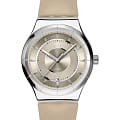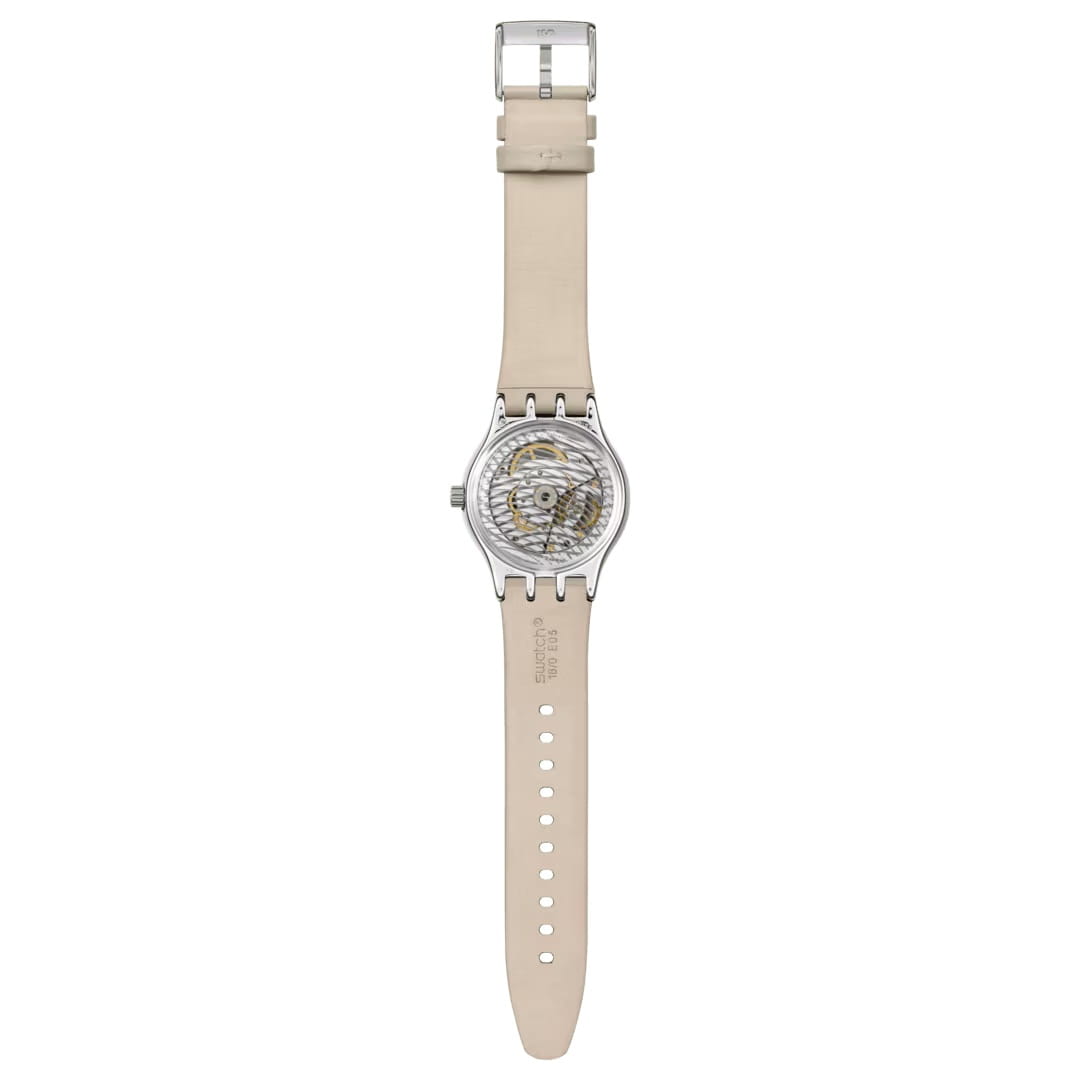 Часы Swatch YIS434 — это стильный и современный аксессуар для тех, кто ценит надежность и комфорт. Эти механические часы имеют полированный бежевый циферблат и индексы. Стрелки с люминесцентным покрытиемЛюминесцентное покрытиеПозволяет считывать показания времени в темноте. Производители наносят на стрелки, часовые индексы, безель или поверхность циферблата светонакопительный состав, дающий холодное свечение., светятся в темноте. Окошко календаря расположено в положении 6 часов. Блестящий корпус из нержавеющей стали, а через заднюю крышку с цифровым принтом просматривается механизм SISTEM51. Модель оснащена автоматическим механизмом Sistem51, который состоит всего из 51 детали и имеет запас хода 90 часов. Дополняет модель бежевый ремешок из кожи с классической застежкой. Водозащита 30 метров позволяет защитить корпус от случайных брызг или капель дождя, что делает часы практичными для повседневного использования. Эти часы станут ярким акцентом в вашем образе.