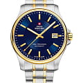 Высокоточные мужские кварцевые часы  Часы, минуты, секунды, дата Корпус и браслет выполнены из нержавеющей стали с частичным PVD покрытием цвета желтого золота Диаметр корпуса 39 мм, толщина 8,5 мм Устойчивое к царапинам сапфировое стекло Водостойкость WR 100