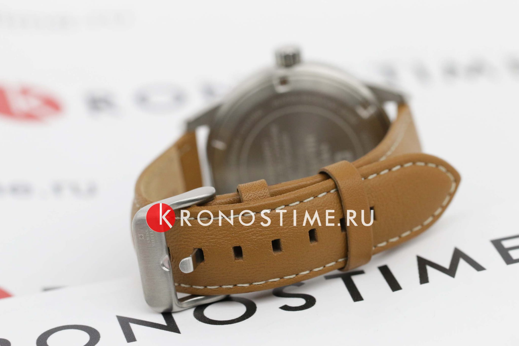 Кварцевый механизм с высокой точностью. Минеральное стеклоМинеральное стеклоМинеральное стекло представляет собой искусственно выращенный минерал кварца. Такое стекло отличается особой устойчивостью к повреждениям и царапинам. Уступает по некоторым качествам сапфировому стеклу. устойчивое к появлению царапин, обладающее высокой прозрачностью. Стрелки с люминесцентным покрытиемЛюминесцентное покрытиеПозволяет считывать показания времени в темноте. Производители наносят на стрелки, часовые индексы, безель или поверхность циферблата светонакопительный состав, дающий холодное свечение.. БезельБезельВнешний ободок, закрепляющий стекло. В спортивных часах так называется поворотное кольцо с делениями на циферблате, выполняет роль таймера – замеряет отрезки времени на шкале. Неподвижный безель – элемент декора. Однонаправленно вращающийся безель на дайверских часах позволяет фиксировать моменты погружения и выныривания на поверхность. вращающийся с PVD-покрытиемPVDУльтратонкое покрытие наносится в технике вакуумного напыления, сочетает в себе нитрид титана особой прочности со слоем золота или оксида хрома. Несёт в себе декоративную или защитную функцию.. Класс водозащиты: 200 метров, позволит плавать, нырять и заниматься другими водными видами спорта. Корпус часов изготовлен из нержавеющей стали. Кожаный ремешок с классической застежкой.