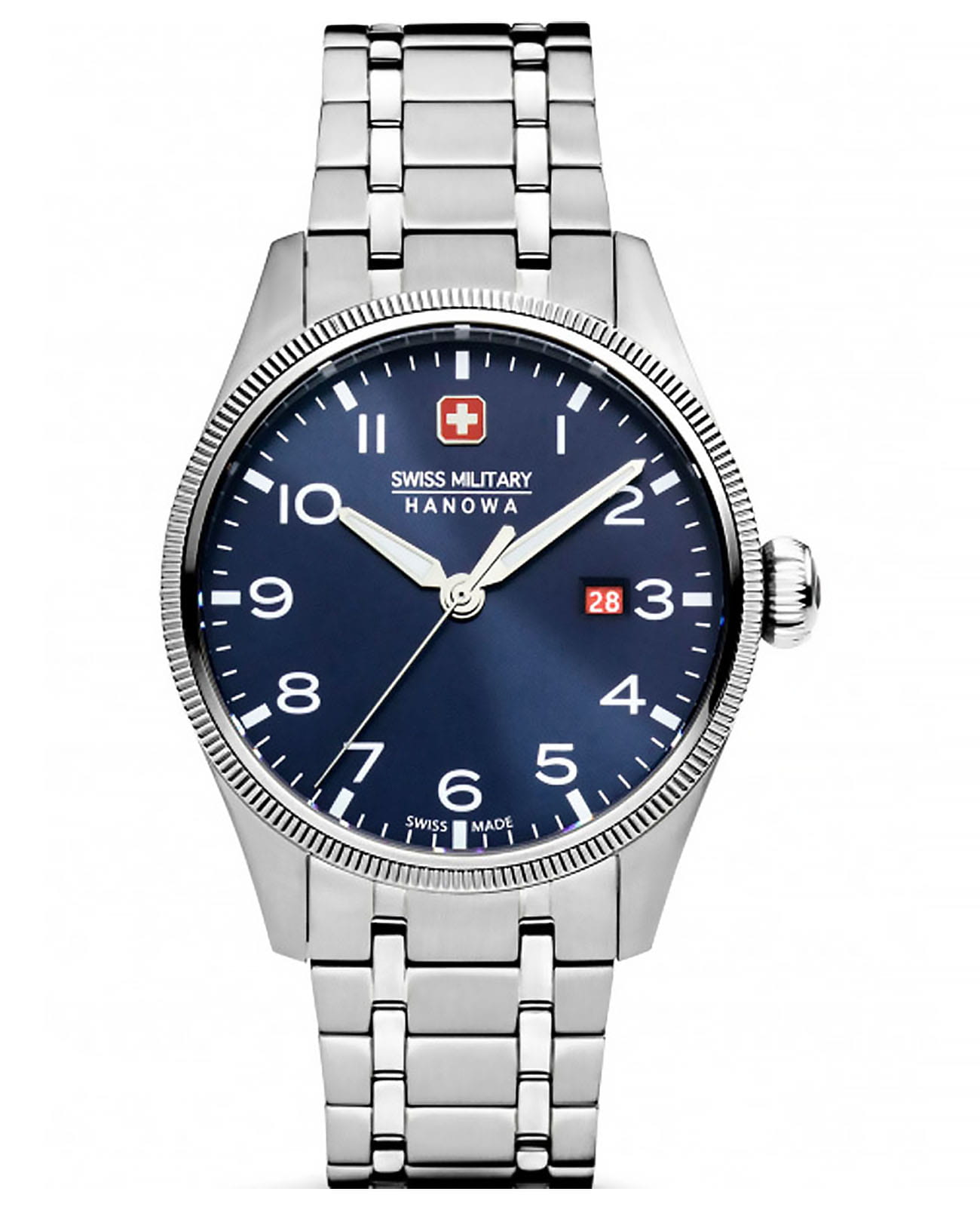 Мужские швейцарские часы Swiss Military Hanowa Thunderbolt SMWGH0000802, кварцевый механизм с высокой точностью. Сапфировое стеклоСапфировое стеклоПрочный и надёжный материал из кристалла сапфира синтетического происхождения, характеризующийся особой твёрдостью и устойчивостью к царапинам и повреждениям. устойчивое к появлению царапин, обладающее высокой прозрачностью. Класс водозащиты: 100 метров, позволит плавать, нырять и заниматься другими водными видами спорта. Корпус часов изготовлен из стали. Браслет с раскладной застёжкойРаскладная застёжкаТакой тип застёжки используется только на браслетах из металла. Она никогда не раскрывается полностью, происходит разделение на 2 и более частей. Раскладывающая застёжка снизит вероятность потери часов к минимуму..