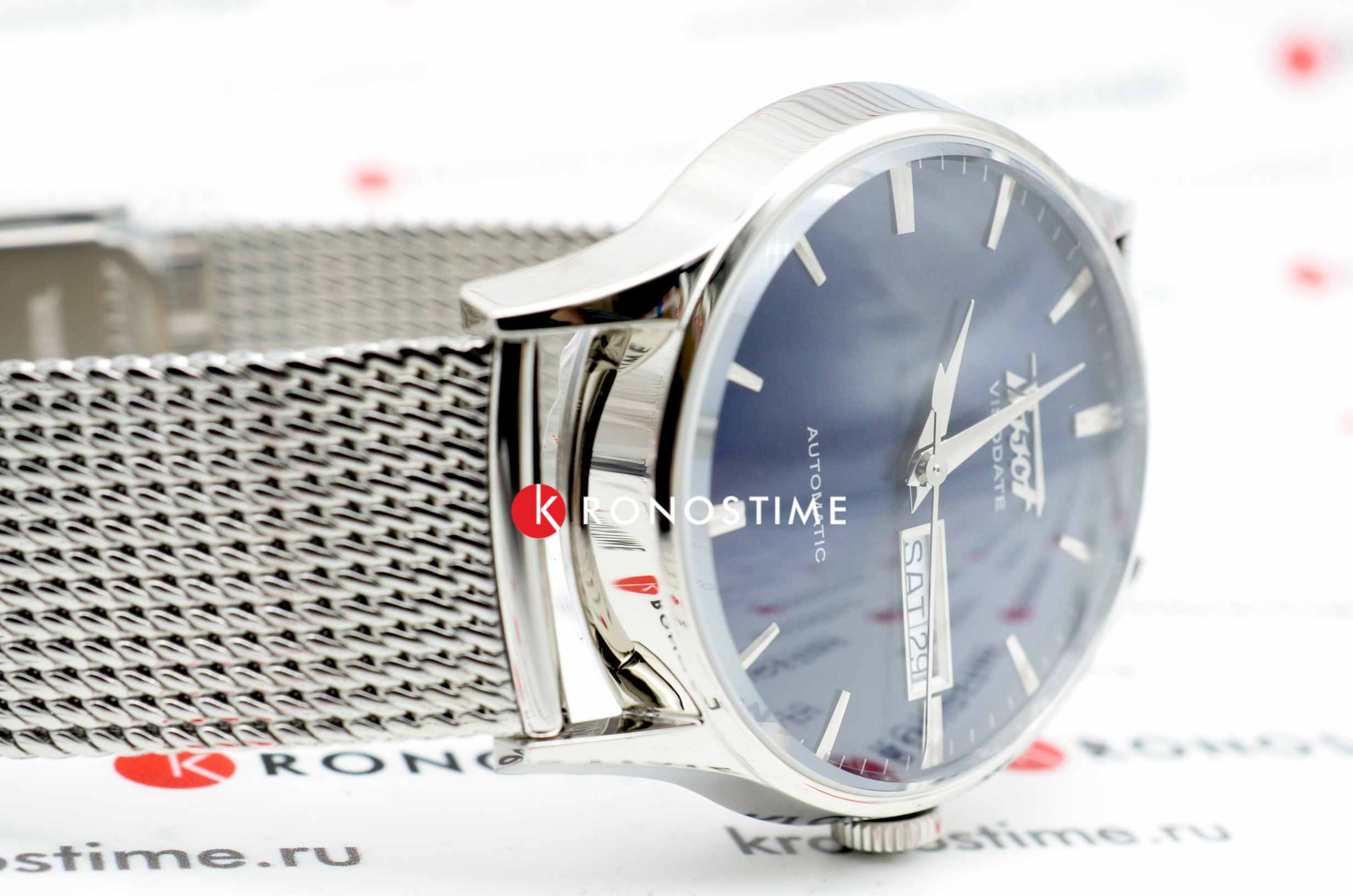 Мужские механические часы из коллекции Visodate обладают синим циферблатом со стальными стрелками, которые отлично выделяются на фоне и обеспечивают хорошую видимость показателей.