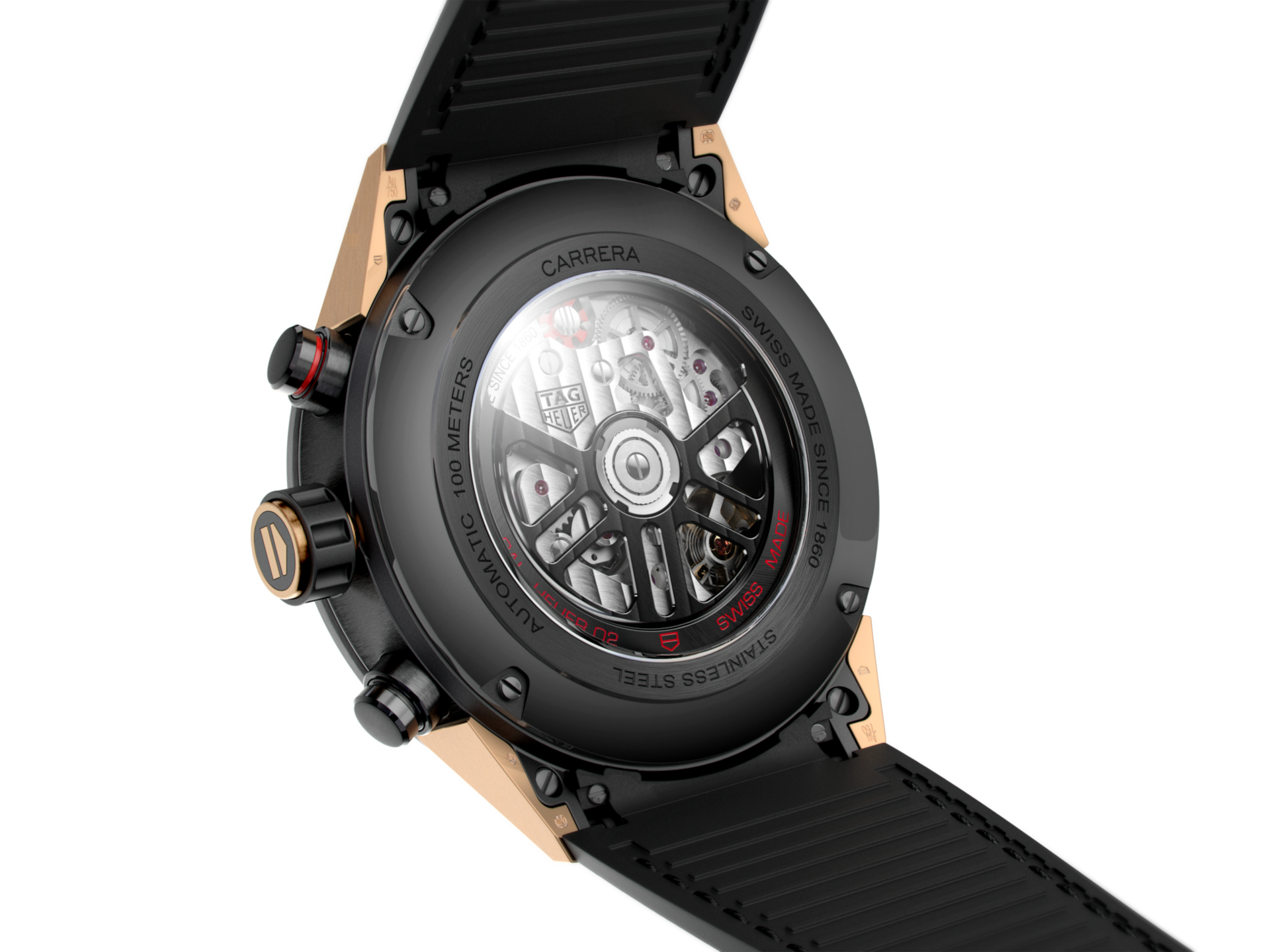 Часы TAG Heuer Carrera из золота с черным покрытием и розового золота, оснащенные мануфактурным механизмом Heuer 02 с запасом хода 80 часов. Модель дополнена элегантным черный ремешком из кожи аллигатора и каучука. TAG Heuer Carrera CBG2A50.FC6450, механический механизм (автоматический калибр) с высокой точностью. Сапфировое стекло устойчивое к появлению царапин, обладающее высокой прозрачностью. Класс водозащиты: 100 метров, позволит плавать, нырять и заниматься другими водными видами спорта. Корпус часов изготовлен из стали, золотистого цвета.