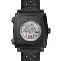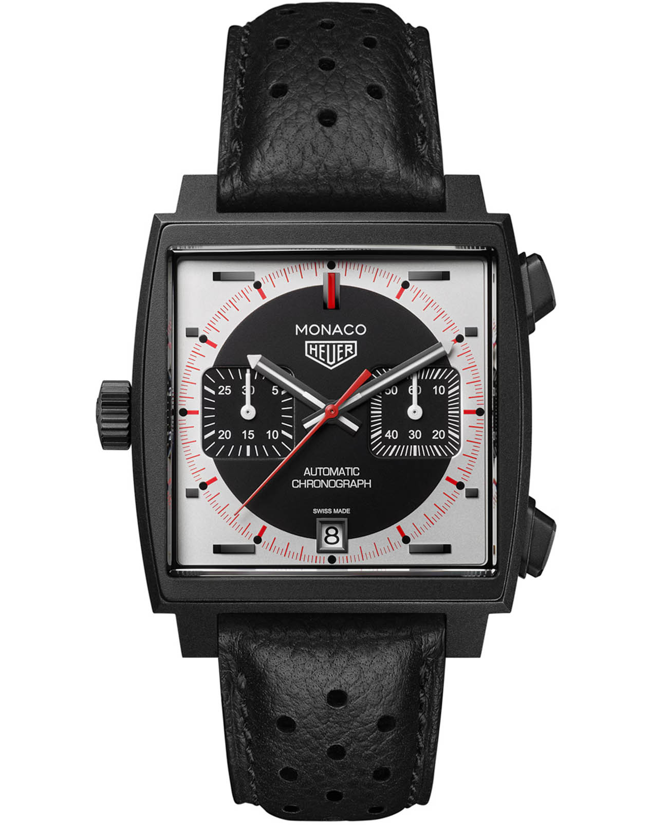 Часы TAG Heuer Monaco CAW218F.FC6356 созданы для мужчин, выбирающих качество премиум-класса и броский дизайн. Квадратный корпус 39 мм из титана с DLC-покрытиемDLC-покрытиеDiamond like carbon - одно из лучших видов покрытия, представляющее собой углерод с алмазными свойствами. На поверхность материала наносятся распавшиеся молекулы углерода, превращающиеся в плёнку из алмазоподобных связей, которая перенимает твёрдость алмаза., защищенный сапфировым стекломСапфировое стеклоПрочный и надёжный материал из кристалла сапфира синтетического происхождения, характеризующийся особой твёрдостью и устойчивостью к царапинам и повреждениям.. Надежный и точный механизм Calibre 11 обладает запасом хода 40 часов. Часы с люминесцентным покрытиемЛюминесцентное покрытиеПозволяет считывать показания времени в темноте. Производители наносят на стрелки, часовые индексы, безель или поверхность циферблата светонакопительный состав, дающий холодное свечение. Super-LumiNova, обеспечивающим исключительную читаемость в любых условиях. Кожаный черный браслет часов дополнен раскладной застёжкойРаскладная застёжкаТакой тип застёжки используется только на браслетах из металла. Она никогда не раскрывается полностью, происходит разделение на 2 и более частей. Раскладывающая застёжка снизит вероятность потери часов к минимуму.. Часы с функциями календаря, секундомераСекундомерСекундоме́р — прибор, способный измерять интервалы времени с точностью до долей секунды., хронографаХронографФункция позволяет измерять отрезки времени с особой точностью: часы, минуты, секунды. Верным признаком хронографа является наличие на циферблате 3 дополнительных окошек-счётчиков.. Эти часы современный шедевр, выпущенные ограниченной серией.