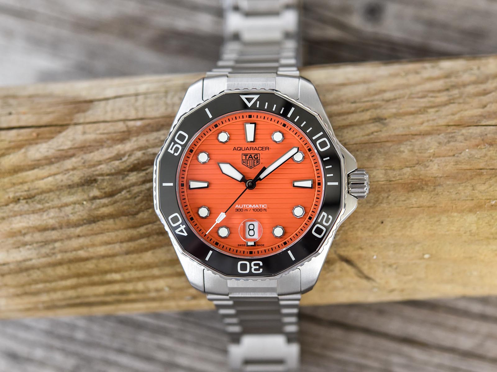 Дизайн часов TAG Heuer Aquaracer вдохновлен классической моделью 1979 года. Эти дерзкие оранжевые часы для дайвинга в стальном 43-миллиметровом корпусе готовы выдержать любые условия. Идеальный спутник для ваших свершений, полных адреналина. Мужские механические швейцарские часы с автоподзаводом TAG Heuer Aquaracer Professional 300 Orange Diver WBP201F.BA0632, механический механизм (автоматический калибр) с высокой точностью. Сапфировое стеклоСапфировое стеклоПрочный и надёжный материал из кристалла сапфира синтетического происхождения, характеризующийся особой твёрдостью и устойчивостью к царапинам и повреждениям. устойчивое к появлению царапин, обладающее высокой прозрачностью. Класс водозащиты: 300 метров, позволит плавать, нырять и заниматься другими водными видами спорта. Корпус часов изготовлен из стали. Функциональный и элегантный корпус часов TAG Heuer Aquaracer отличается высокой эргономичностью и готов к любым испытаниям. Стальной браслет на раскладной застёжкеРаскладная застёжкаТакой тип застёжки используется только на браслетах из металла. Она никогда не раскрывается полностью, происходит разделение на 2 и более частей. Раскладывающая застёжка снизит вероятность потери часов к минимуму. с точной системой регулировки и высококачественной надежной застежкой прослужит долгие годы. Оранжевый – цвет безопасности в море, а яркие тона обеспечивают максимальный контраст с голубизной воды. Циферблат, созданный, чтобы выделяться. Вращающийся в одном направлении керамический безельБезельВнешний ободок, закрепляющий стекло. В спортивных часах так называется поворотное кольцо с делениями на циферблате, выполняет роль таймера – замеряет отрезки времени на шкале. Неподвижный безель – элемент декора. Однонаправленно вращающийся безель на дайверских часах позволяет фиксировать моменты погружения и выныривания на поверхность..