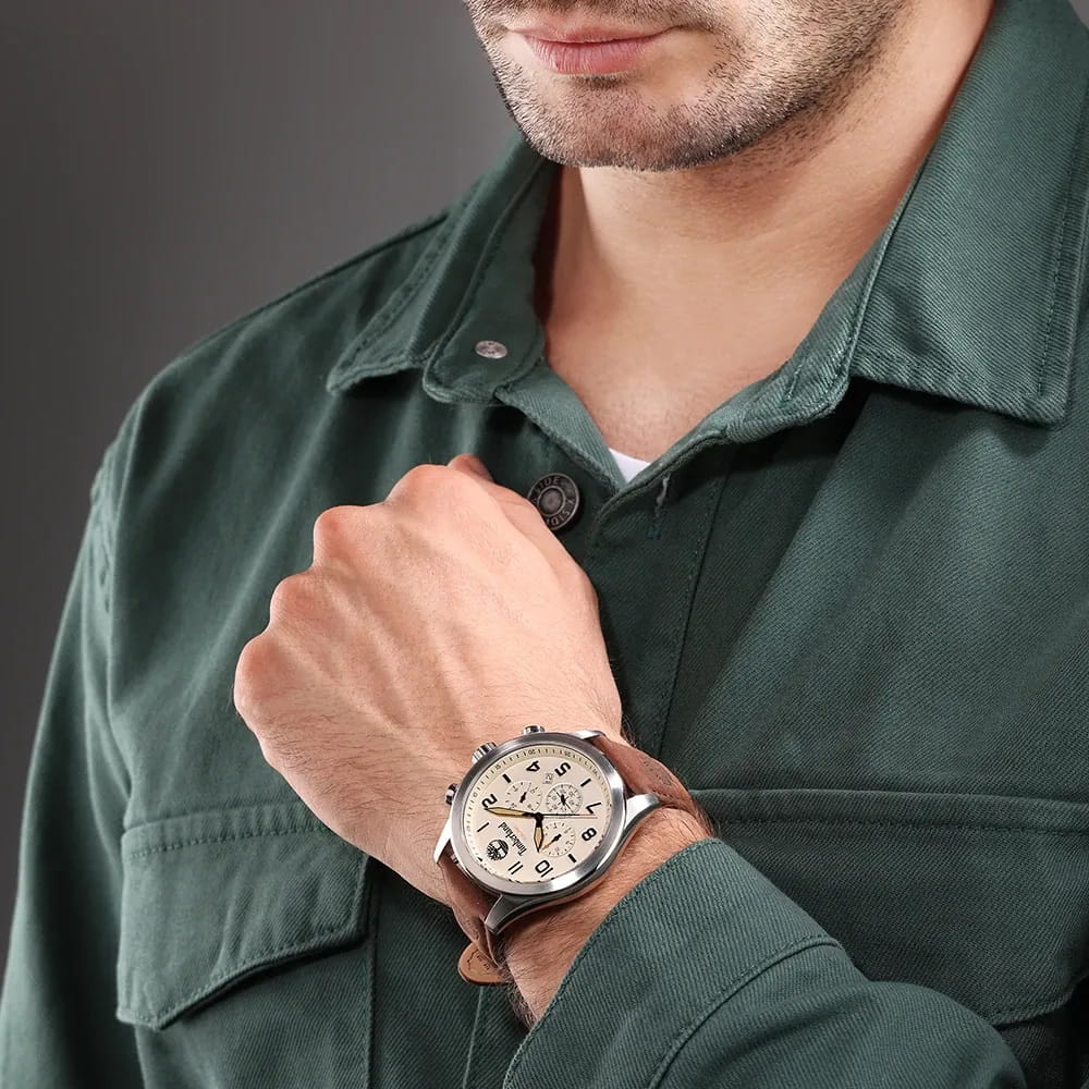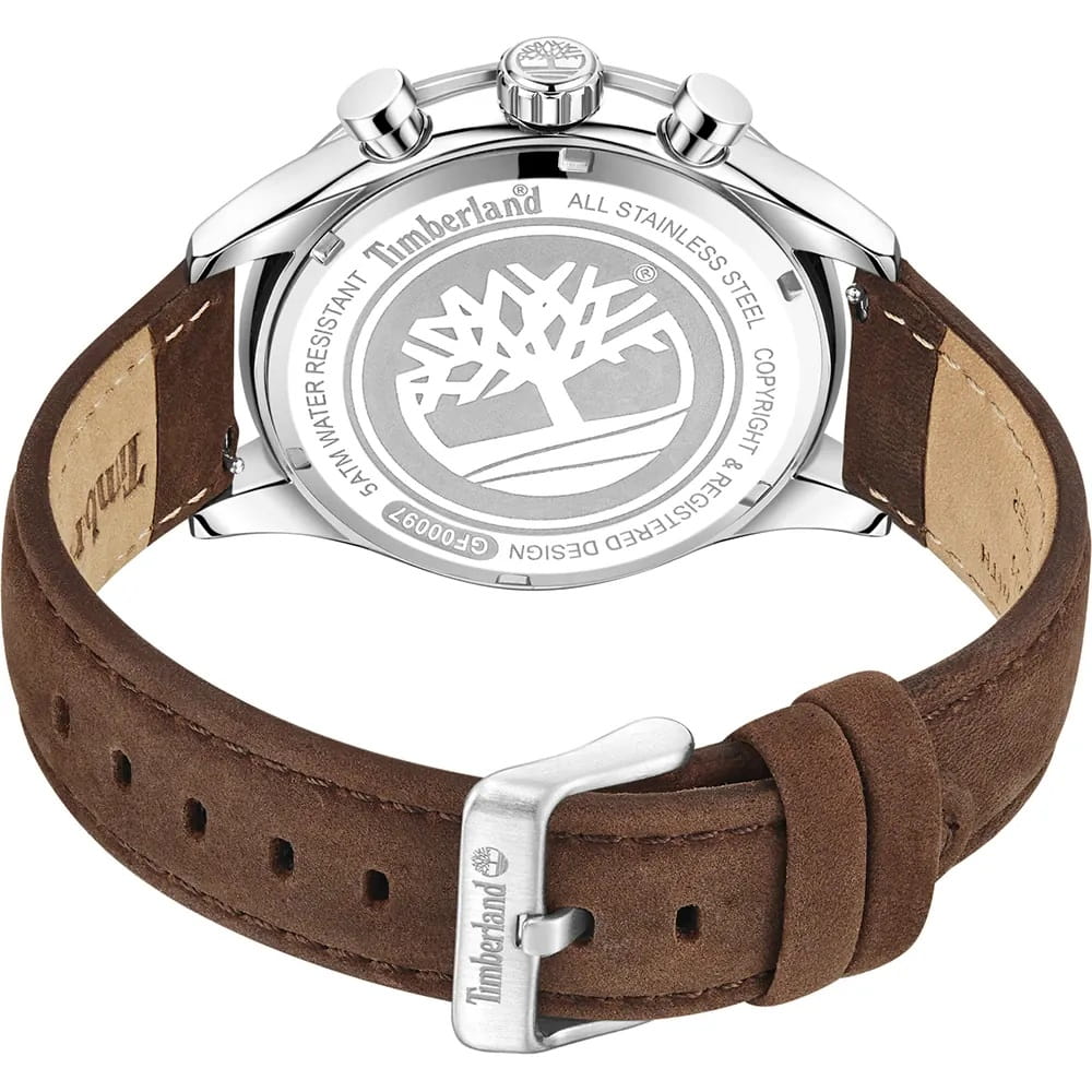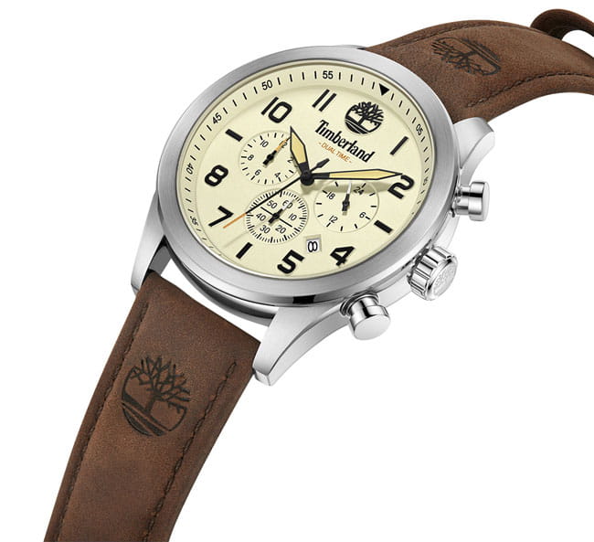 Американские мужские часы-хронографХронографФункция позволяет измерять отрезки времени с особой точностью: часы, минуты, секунды. Верным признаком хронографа является наличие на циферблате 3 дополнительных окошек-счётчиков. Timberland Ashmont TDWGF0009703 имеют кварцевый механизм с высокой точностью. Класс водозащиты: 50 метров, позволит защитить корпус от случайных брызг или капель дождя. Корпус часов изготовлен из стали. Циферблат украшен логотипом бренда. Прочное минеральное стеклоМинеральное стеклоМинеральное стекло представляет собой искусственно выращенный минерал кварца. Такое стекло отличается особой устойчивостью к повреждениям и царапинам. Уступает по некоторым качествам сапфировому стеклу.. Стрелки c люминесцентным покрытиемЛюминесцентное покрытиеПозволяет считывать показания времени в темноте. Производители наносят на стрелки, часовые индексы, безель или поверхность циферблата светонакопительный состав, дающий холодное свечение.. Кожаный ремешок с классической застежкой и системой быстрой замены. Окошко даты находится в положении между 4 и 5 часов.