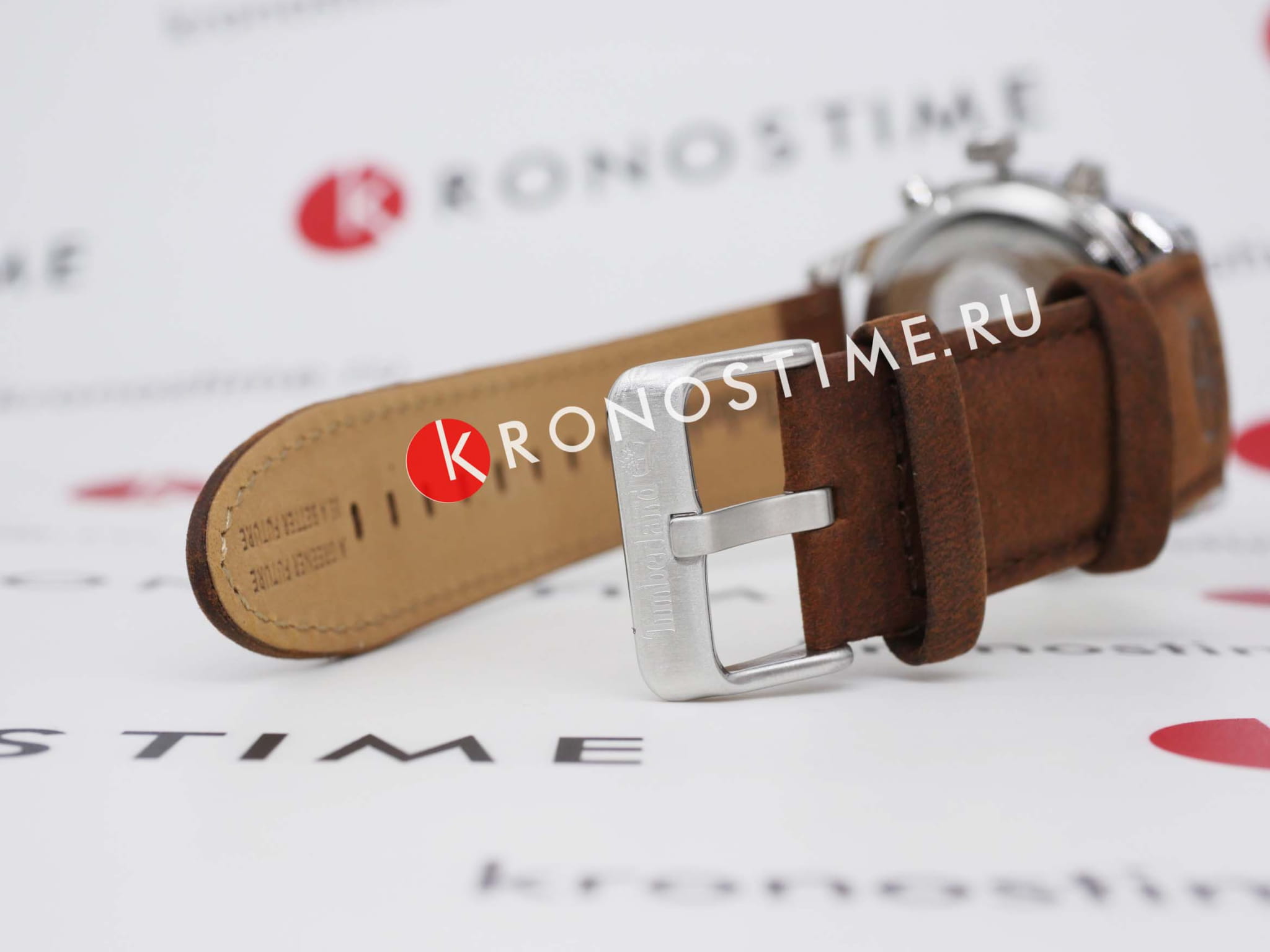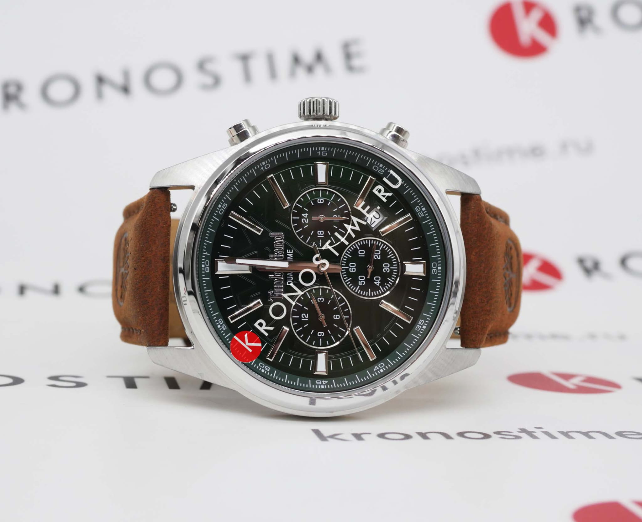 Американские мужские часы Timberland Northbridge TDWGF0041206 c хронографомХронографФункция позволяет измерять отрезки времени с особой точностью: часы, минуты, секунды. Верным признаком хронографа является наличие на циферблате 3 дополнительных окошек-счётчиков. имеют кварцевый механизм с высокой точностью. Класс водозащиты: 50 метров, позволит защитить корпус от случайных брызг или капель дождя. Корпус часов изготовлен из стали. Прочное минеральное стеклоМинеральное стеклоМинеральное стекло представляет собой искусственно выращенный минерал кварца. Такое стекло отличается особой устойчивостью к повреждениям и царапинам. Уступает по некоторым качествам сапфировому стеклу.. Стрелки c люминесцентным покрытиемЛюминесцентное покрытиеПозволяет считывать показания времени в темноте. Производители наносят на стрелки, часовые индексы, безель или поверхность циферблата светонакопительный состав, дающий холодное свечение.. Кожаный ремешок на стандартной застежке.