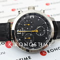 Секундная стрелка и стрелки счётчиков хронографаХронографФункция позволяет измерять отрезки времени с особой точностью: часы, минуты, секунды. Верным признаком хронографа является наличие на циферблате 3 дополнительных окошек-счётчиков. выполнены в жёлтом цвете, такая особенность привносит в общую картину эксклюзивность и спортивные элементы. Стильный аксессуар будет гармонично смотреться как с брючным строгим костюмом, так и с образом с джинсами. Часы комплектуются ремешком из натуральной кожи с рисунком под кожу крокодила.Кварцевый калибр ETA G10.211. Прочное сапфировое стекло. Возможности: хронограф, секундомер, тахиметрТахиметрРазмеченная шкала, располагается на ободке или безеле часов. Тахиметр позволяет рассчитать скорость на определённом участке пути, расстояние измеряется в километрах или милях., отображение текущей даты. Габариты: 41 x 42 x 12 мм.
