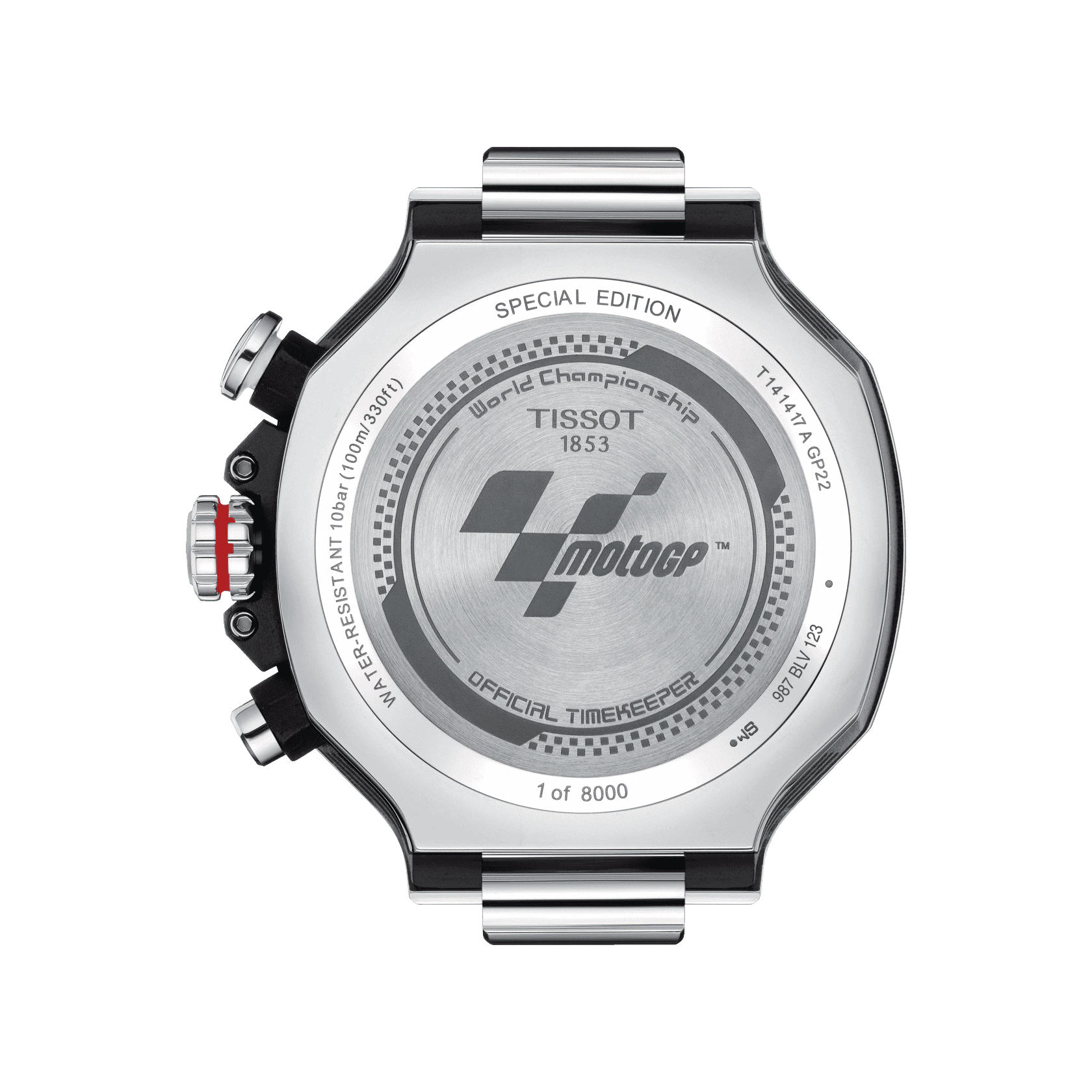 Швейцарские мужские часы Tissot T-Race MotoGP Chronograph T141.417.11.057.00 из коллекции T-Race в сотрудничестве бренда Tissot и чемпионата MotoGP ™. Модель выпущена ограниченным тиражом, всего 8000 экземпляров.