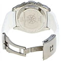 Наручные часы в классическом белом цвете имеют сенсорное сапфировое стекло, позволяющее управлять всеми функциональными возможностями аксессуара. Среди них хронографХронографФункция позволяет измерять отрезки времени с особой точностью: часы, минуты, секунды. Верным признаком хронографа является наличие на циферблате 3 дополнительных окошек-счётчиков., компас, календарь приливов и отливов, GMTGMTОтображение времени второго часового пояса.Такая функция особенно актуальна для путешественников и бизнесменов,которые общаются с людьми из разных стран,теперь вы всегда будете знать,какой час у вашего партнёра или близкого человека., таймер, будильник. Модель поможет не растеряться в путешествии и выдерживать городской ритм. Кварцевый швейцарский механизм ETA E49.301. Водостойкость 10 бар. Прочный каучуковый ремешок. Габариты: 42,15 x 42,15 x 13,5 мм.