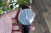 Стильные часы для мужчин оснащены высокоточным хронографом, способным измерять два временных промежутка одновременно. Базовый функционал: секундомер, календарь. Кварцевый калибр ETA G10.211. Минималистичный циферблат. Сапфировое стекло характеризуется повышенной устойчивостью к царапинам. Ремешок из натуральной коровьей кожи с тиснением под крокодила. Габариты: 42 x 42 x 11,1 мм.