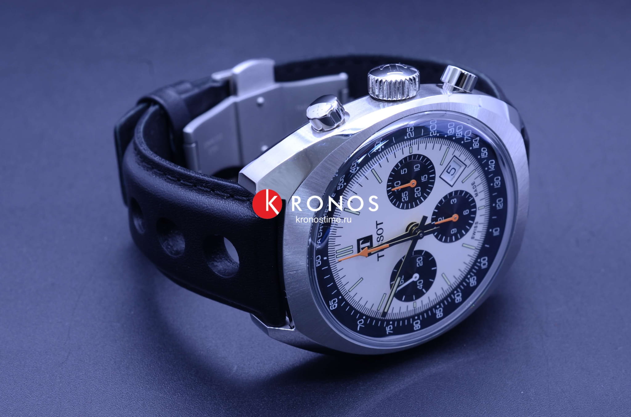 Наручные часы с оранжевыми деталями возрождают аксессуар Tissot Navigator 1973 года, спортивный хронографХронографФункция позволяет измерять отрезки времени с особой точностью: часы, минуты, секунды. Верным признаком хронографа является наличие на циферблате 3 дополнительных окошек-счётчиков. символизирует историческое партнёрство швейцарского бренда и автогоночной команды Kessel Classics. Модель выполнена в винтажном стиле, практически весь корпус матовый, исключение составляет передняя скошенная полированная поверхность. Часы оснащаются престижным автоматическим механизмом Valjoux 7753 с запасом хода 48 часов и отделкой ротора женевские волны. Прозрачная задняя крышка. Чёрный ремешок с перфорацией из натуральной кожи. . Стекло из сапфира с антибликовой поверхностью. Секундомер, отображение числа. Габариты: 46,6 x 43 x 14,8 мм.