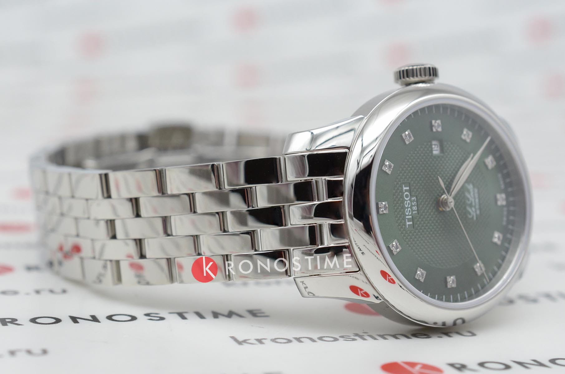 Женские наручные часы Tissot Le Locle Automatic Lady (модель T006.207.11.096.00) – утончённое сочетание элегантности и технологичности. Корпус диаметром 29 мм выполнен из нержавеющей стали 316L и оснащён прозрачной задней крышкой, позволяющей наблюдать за работой швейцарского механизма. Зелёный циферблат с узором "clous de Paris" и восемью бриллиантами подчёркивает изысканность модели. Он надёжно защищён сапфировым стекломСапфировое стеклоПрочный и надёжный материал из кристалла сапфира синтетического происхождения, характеризующийся особой твёрдостью и устойчивостью к царапинам и повреждениям. с антибликовым покрытиемАнтибликовое покрытиеСлой оксида металла в 0,13-0,3 микрон, благодаря которому стекло часов не бликует и не отражает свет. Антибликовое покрытие уменьшает отражение света в 10 раз, обеспечивая отличную читаемость показателей циферблата., обеспечивающим идеальную читаемость. Механизм Powermatic 80Powermatic 80Эксклюзивный калибр от швейцарской компании ETA с увеличенным запасом хода до 80 часов за счёт удлинённой заводной пружины. Характеризуется улучшенной системой спуска со сниженным трением. с запасом хода 48 часов оснащён инновационной пружиной Nivachron™Nivachron™Специально разработанный инновационный сплав Nivachron™ повышает устойчивость часов к воздействию магнитных полей., повышающей устойчивость к магнитным полям и ударам. Браслет из нержавеющей стали дополнен удобной застёжкой 'бабочка'Застёжка "бабочка"Такой вид застёжки дополняется предохранителями, помогающими избежать случайного раскрытия браслета. Обладают изящным исполнением. , обеспечивающей комфортное ношение. Водонепроницаемость 3 бара (30 метров) защитит от случайных брызг. Идеальный аксессуар для женщин, ценящих сочетание классики и передовых технологий.