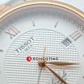 Выпуск модели был приурочен к юбилею Tissot, классический аксессуар будет актуальным на все времена. Часы-биколор сочетают в себе серебряный и золотой оттенки, последнего удаётся добиться за счёт защитного PVD-покрытия. Узорчатый белый циферблат является отличительной особенностью этой линейки. Автоматический калибр ETA 2671. Прозрачная задняя крышка. Ремешок из натуральной кожи с тиснением под кожу крокодила. Отображение даты. Габариты: 29 x 29 x 9 мм.