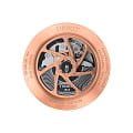 Спортивный хронографХронографФункция позволяет измерять отрезки времени с особой точностью: часы, минуты, секунды. Верным признаком хронографа является наличие на циферблате 3 дополнительных окошек-счётчиков. с антрацитовым циферблатом отражает напряжённую динамику мотогоночного чемпионата, при создании модели дизайнеры вдохновлялись современными мотоциклами. Оригинальный безельБезельВнешний ободок, закрепляющий стекло. В спортивных часах так называется поворотное кольцо с делениями на циферблате, выполняет роль таймера – замеряет отрезки времени на шкале. Неподвижный безель – элемент декора. Однонаправленно вращающийся безель на дайверских часах позволяет фиксировать моменты погружения и выныривания на поверхность. имитирует тормозной диск, прозрачная задняя крышка выполнена в виде колеса. Это наручные часы с автоподзаводом, они оснащены популярным калибром ETA C01.211 с запасом хода 45 часов. Стальной корпус с чёрным и розово-золотистым PVD-покрытиемPVDУльтратонкое покрытие наносится в технике вакуумного напыления, сочетает в себе нитрид титана особой прочности со слоем золота или оксида хрома. Несёт в себе декоративную или защитную функцию.. Сапфировое стекло. Удобный силиконовый ремешок. Люминесцентная подсветкаЛюминесцентное покрытиеПозволяет считывать показания времени в темноте. Производители наносят на стрелки, часовые индексы, безель или поверхность циферблата светонакопительный состав, дающий холодное свечение.. Водостойкость до 10 бар. Секундомер, тахиметрТахиметрРазмеченная шкала, располагается на ободке или безеле часов. Тахиметр позволяет рассчитать скорость на определённом участке пути, расстояние измеряется в километрах или милях., индикация числа. Габариты: 47,25 x 45 x 16 мм.