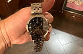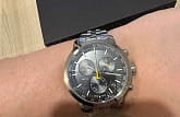 Эффектное чёрно-серебристое исполнение модели делает её идеальным вариантом для дополнения любого образа. Спортивный хронографХронографФункция позволяет измерять отрезки времени с особой точностью: часы, минуты, секунды. Верным признаком хронографа является наличие на циферблате 3 дополнительных окошек-счётчиков. обладает водонепроницаемостью при давлении 20 бар на глубине 200 метров, часы подходят для плавания и дайвинга. Кварцевый калибр ETA G10.211. Хирургическая сталь 316 L. Завинчивающаяся заводная головка и задняя крышка. Секундомер, тахиметрТахиметрРазмеченная шкала, располагается на ободке или безеле часов. Тахиметр позволяет рассчитать скорость на определённом участке пути, расстояние измеряется в километрах или милях., апертура даты. Габариты: 43 x 42 x 12 мм.