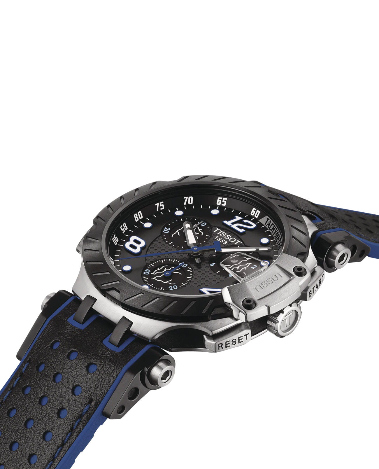 Швейцарские мужские часы Limited Edition из коллекции T-Race отличаются дерзким спортивным стилем, аксессуар, посвящённый мотогонщику Томасу Люти, выпускается в ограниченном количестве - 1212 экземпляров.