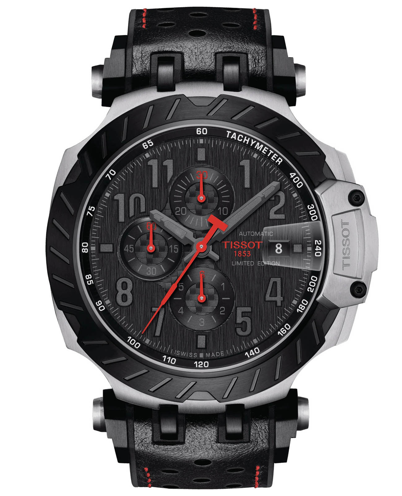 Лимитированный выпуск MotoGP (3333 экземпляра) Tissot T-Race MotoGP Automatic Chronograph Limited Edition T115.427.27.057.01, механический механизм (автоматический калибр) с высокой точностью. Сапфировое стекло устойчивое к появлению царапин, обладающее высокой прозрачностью. Класс водозащиты: 100 метров, позволит плавать, нырять и заниматься другими водными видами спорта. Корпус часов изготовлен из стали.