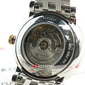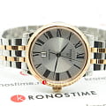 Модель выполнена в минималистичном стиле, нет ни одной лишней детали. Наручные часы предназначены для изящных леди, желающих выглядеть элегантно при любых обстоятельствах. Стильно выглядит тонкий браслет с , где серебристые звенья переплетаются с золотистыми, с нанесённым PVD-покрытиемPVDУльтратонкое покрытие наносится в технике вакуумного напыления, сочетает в себе нитрид титана особой прочности со слоем золота или оксида хрома. Несёт в себе декоративную или защитную функцию.. В основе работы – швейцарский автоматический механизм ETA 2671 с запасом хода до 38 часов. Циферблат с римскими цифрами защищён сапфировым стеклом, устойчивым к царапинам. Корпус и браслет сделаны из стали 316L с антикоррозионными свойствами. На метке 6 часов размещена апертура даты. Габариты: 30 x 30 x 9,5 мм.