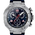 Высокая точность хода обусловлена наличием швейцарского кварцевого калибра ETA G10.212. Сапфировое стеклоСапфировое стеклоПрочный и надёжный материал из кристалла сапфира синтетического происхождения, характеризующийся особой твёрдостью и устойчивостью к царапинам и повреждениям. с антибликовым покрытием. Каучуковый ремешок. Люминесцентная подсветкаЛюминесцентное покрытиеПозволяет считывать показания времени в темноте. Производители наносят на стрелки, часовые индексы, безель или поверхность циферблата светонакопительный состав, дающий холодное свечение. стрелок и меток. Корпус из нержавеющей стали. Водостойкость 100 метров. Секундомер, тахиметрТахиметрРазмеченная шкала, располагается на ободке или безеле часов. Тахиметр позволяет рассчитать скорость на определённом участке пути, расстояние измеряется в километрах или милях., индикация числа. Габариты: 45 x 45 x 11,8 мм. Ограниченная серия из 8000 штук.