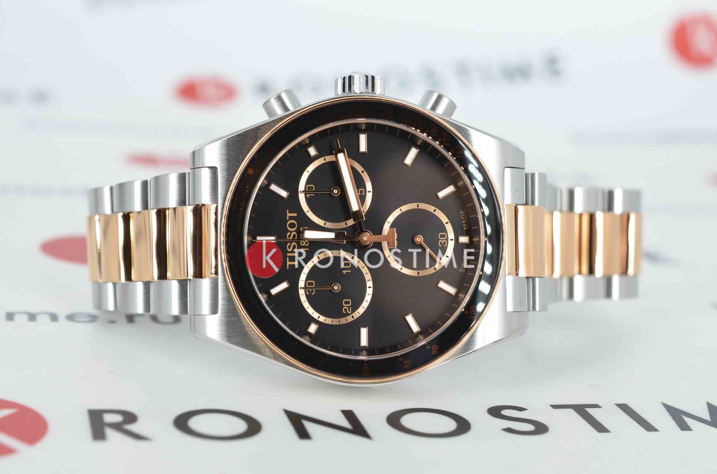 Tissot PR516 Quartz Chronograph T149.417.22.051.01 – элегантные мужские часы, вдохновлённые миром автоспорта 1960-х годов. Корпус диаметром 40 мм и толщиной 12,16 мм выполнен из нержавеющей стали 316L и безельБезельВнешний ободок, закрепляющий стекло. В спортивных часах так называется поворотное кольцо с делениями на циферблате, выполняет роль таймера – замеряет отрезки времени на шкале. Неподвижный безель – элемент декора. Однонаправленно вращающийся безель на дайверских часах позволяет фиксировать моменты погружения и выныривания на поверхность. с PVD-покрытиемPVDУльтратонкое покрытие наносится в технике вакуумного напыления, сочетает в себе нитрид титана особой прочности со слоем золота или оксида хрома. Несёт в себе декоративную или защитную функцию., придающим модели стильный и современный вид. Чёрный циферблат защищён сапфировым стекломСапфировое стеклоПрочный и надёжный материал из кристалла сапфира синтетического происхождения, характеризующийся особой твёрдостью и устойчивостью к царапинам и повреждениям. с антибликовым покрытиемАнтибликовое покрытиеСлой оксида металла в 0,13-0,3 микрон, благодаря которому стекло часов не бликует и не отражает свет. Антибликовое покрытие уменьшает отражение света в 10 раз, обеспечивая отличную читаемость показателей циферблата., обеспечивающим устойчивость к царапинам и отличную читаемость. Задняя крышка корпуса украшена гравировкой, подчёркивающей уникальность дизайна. Часы оснащены швейцарским кварцевым механизмом с функцией хронографаХронографФункция позволяет измерять отрезки времени с особой точностью: часы, минуты, секунды. Верным признаком хронографа является наличие на циферблате 3 дополнительных окошек-счётчиков., обеспечивающим высокую точность хода. Функциональность модели включает 30-минутный и 1/10-секундный счётчики, центральную 60-секундную стрелку хронографа, а также функции ADD и сплит-хронографаСплит-хронографИспользуется для измерения продолжительности нескольких временных отрезков, начинающихся одновременно, а заканчивающихся в разное время.. Индексы и стрелки покрыты люминесцентным покрытиемЛюминесцентное покрытиеПозволяет считывать показания времени в темноте. Производители наносят на стрелки, часовые индексы, безель или поверхность циферблата светонакопительный состав, дающий холодное свечение. Super-LumiNova®, обеспечивающим отличную видимость в условиях низкой освещённости. Браслет из нержавеющей стали с PVD-покрытиемPVDУльтратонкое покрытие наносится в технике вакуумного напыления, сочетает в себе нитрид титана особой прочности со слоем золота или оксида хрома. Несёт в себе декоративную или защитную функцию. розового золота оснащён системой быстрой замены и раскладной застёжкойРаскладная застёжкаТакой тип застёжки используется только на браслетах из металла. Она никогда не раскрывается полностью, происходит разделение на 2 и более частей. Раскладывающая застёжка снизит вероятность потери часов к минимуму. с предохранителем и кнопками, обеспечивающей комфортное ношение и надёжную фиксацию на запястье. Водозащита до 100 метров (10 бар) позволяет использовать часы во время плавания и других водных видов спорта.