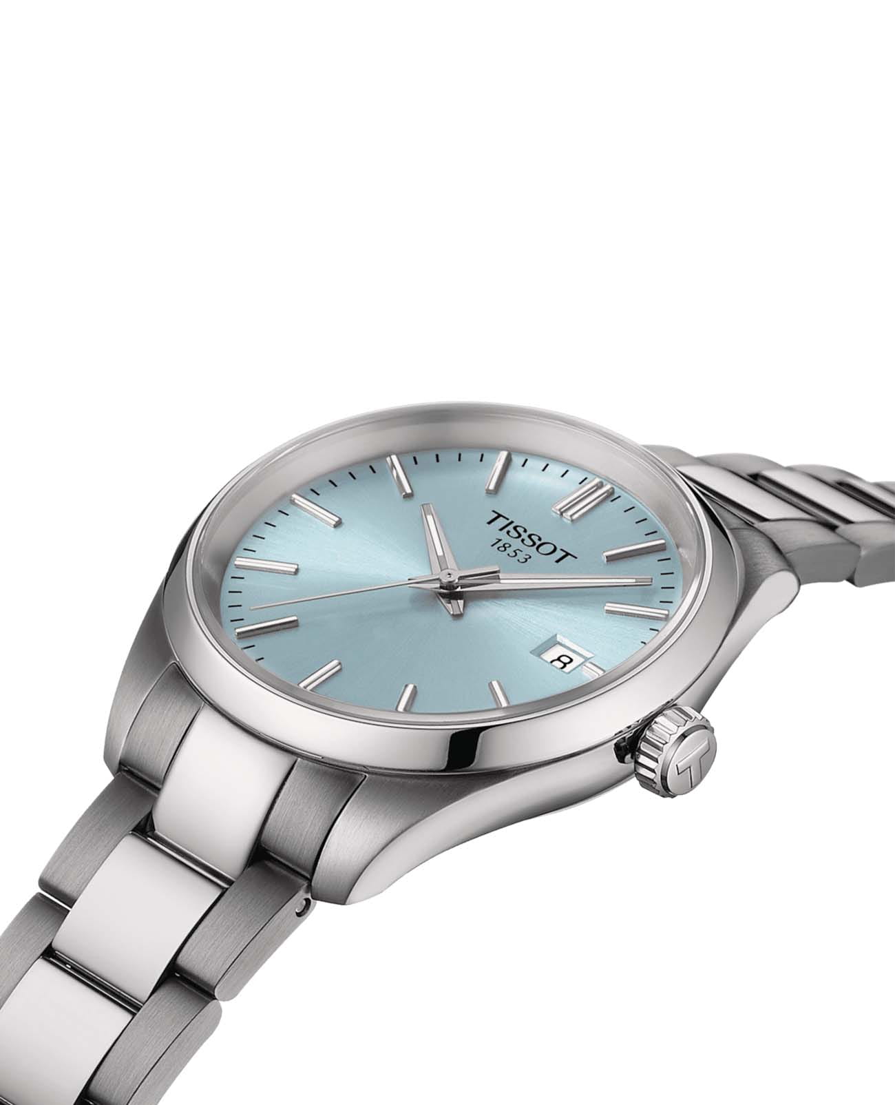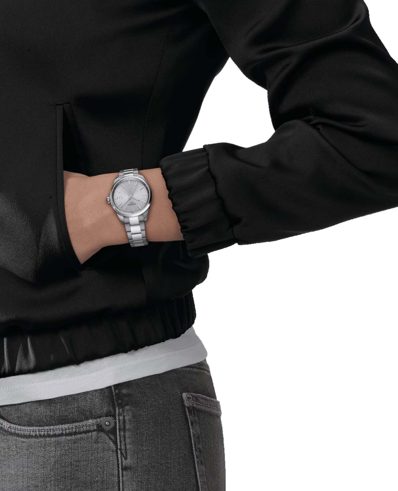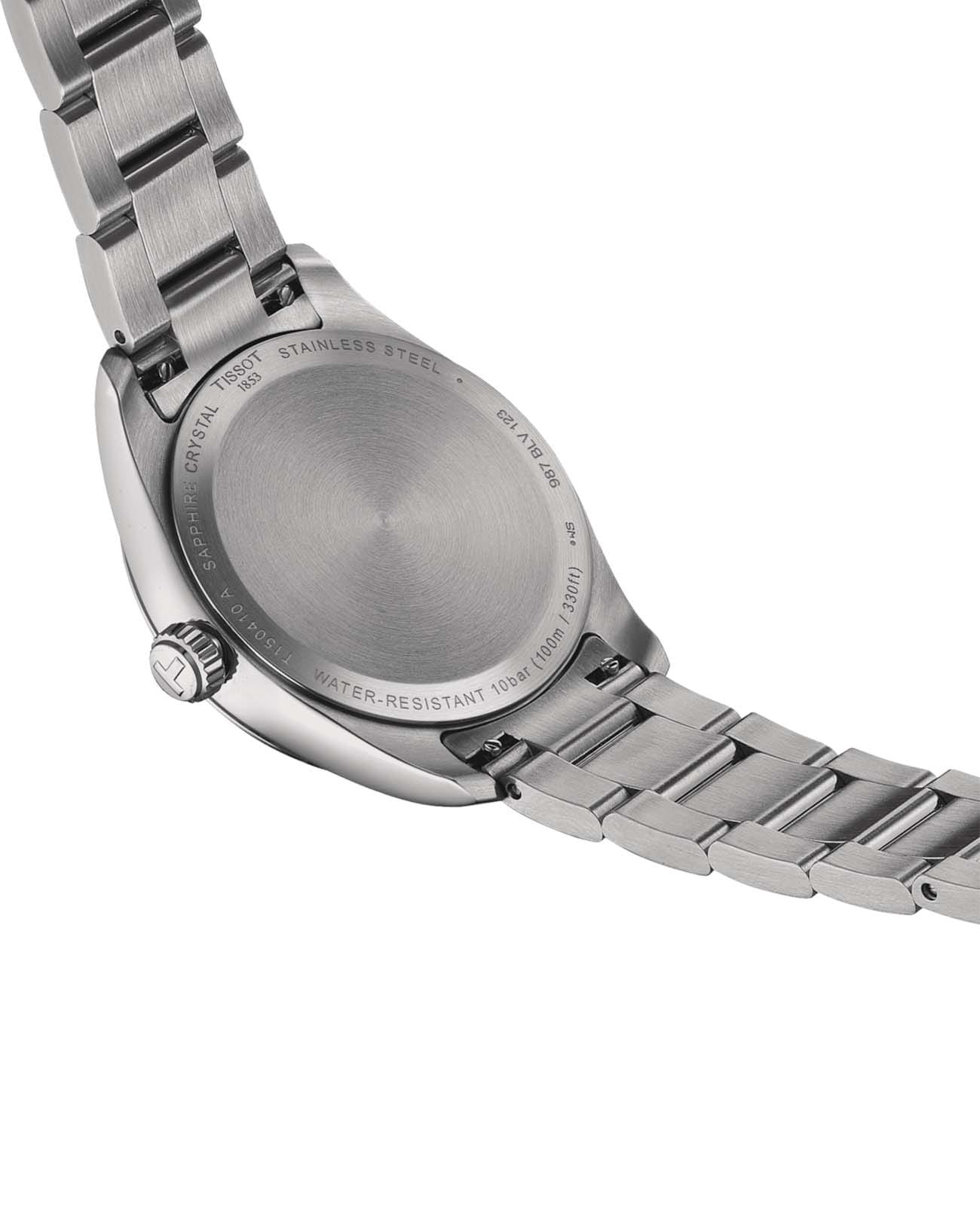 Женские швейцарские часы Tissot PR 100 T150.210.11.351.00, кварцевый механизм с высокой точностью. Сапфировое стеклоСапфировое стеклоПрочный и надёжный материал из кристалла сапфира синтетического происхождения, характеризующийся особой твёрдостью и устойчивостью к царапинам и повреждениям. устойчивое к появлению царапин, обладающее высокой прозрачностью. Корпус часов изготовлен из нержавеющей стали. Стрелки с люминесцентным покрытиемЛюминесцентное покрытиеПозволяет считывать показания времени в темноте. Производители наносят на стрелки, часовые индексы, безель или поверхность циферблата светонакопительный состав, дающий холодное свечение.. Окошко даты в положении 3 часов. Класс водозащиты: 100 метров, позволит плавать, нырять и заниматься другими водными видами спорта. Стальной браслет на застёжке-бабочке с кнопкамиЗастёжка "бабочка"Такой вид застёжки дополняется предохранителями, помогающими избежать случайного раскрытия браслета. Обладают изящным исполнением. .