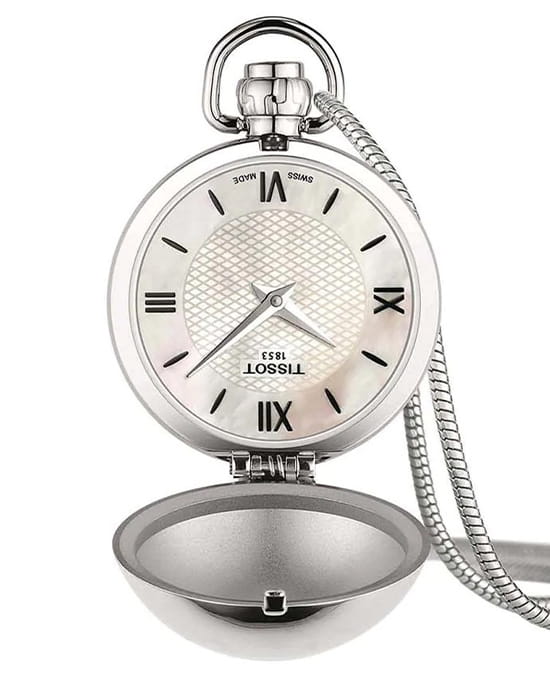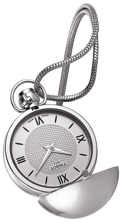 Карманные швейцарские механические часы с минеральным стекломМинеральное стеклоМинеральное стекло представляет собой искусственно выращенный минерал кварца. Такое стекло отличается особой устойчивостью к повреждениям и царапинам. Уступает по некоторым качествам сапфировому стеклу. Tissot T-Pocket Mechanical T858.209.16.118.00, механизм с ручным заводом с высокой точностью.