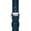 , мягкий блеск идеально гармонирует с ремешком из натуральной телячьей кожи. Классический циферблат дымчатого оттенка с узором «солнечные лучи» декорирован 8 бриллиантами в 0,016 карат, заменяющими индексы. Модель оснащена уникальным автоматическим механизмом ETA Powermatic 48.111, сохраняющим запас хода на 48 часов. Калибр украшен волновыми узорами, его безупречная отделка просматривается сквозь прозрачную заднюю крышку. Сапфировое стекло препятствует образованию царапин. Сохраняется водонепроницаемость до 5 бар. На позиции 3 часов – апертура даты. Габариты: 29 x 29 x 10,4 мм.